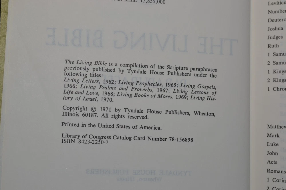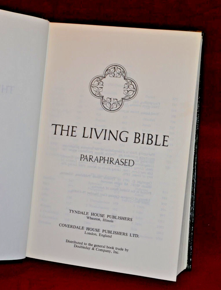 The Living Bible Paraphrased TYNDALE 1971 Hardcover Green Faux Leather Padded Fast Same Day Shipping!...