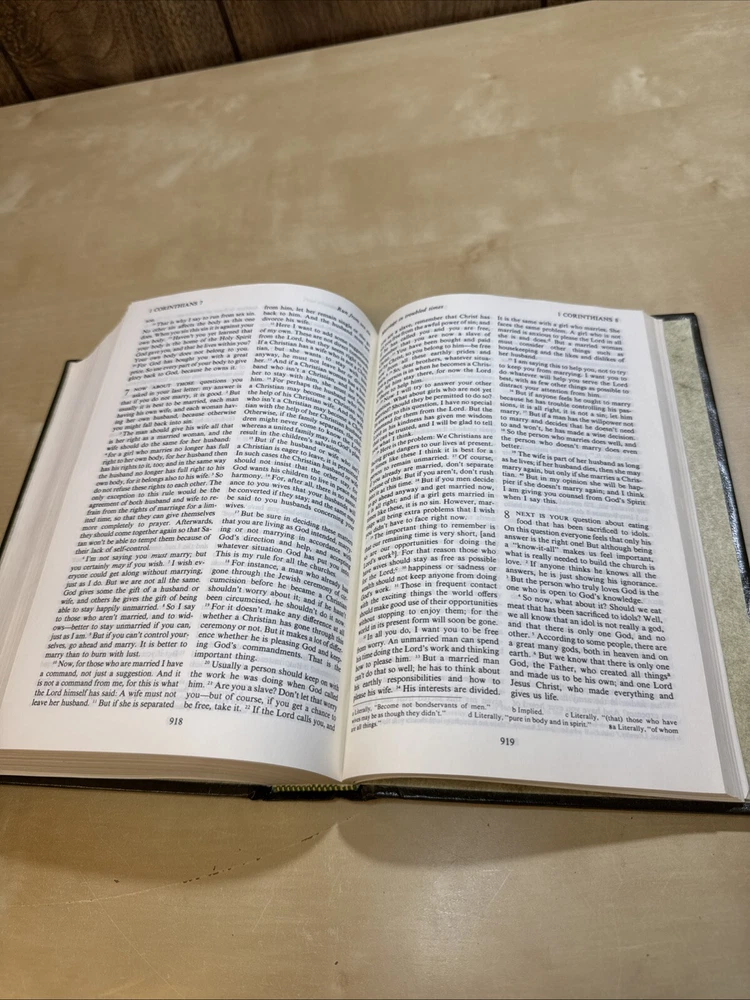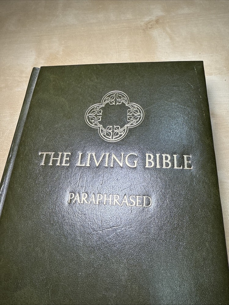 This Bible is a beautiful classic with its green faux leather cover and padded design—so comfortable to hold! The paraphrased text makes it easy to understand, and the condition is great for its age. Shipping was smooth with Media Mail, and it arrived safely. A wonderful addition to my collection!