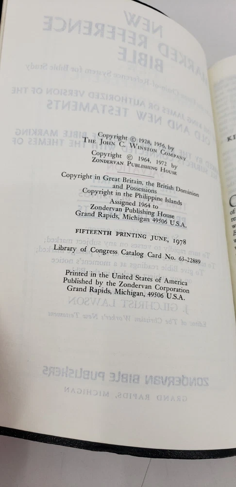The Marked Reference Bible, Concordance Chain Of Reference System Zondervan 1964