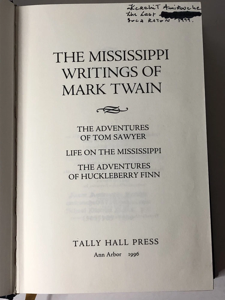 The Mississippi Writings Of Mark Twain - 1996 1st Edition Leather Hardcover. Shipped with Standard Shipping.