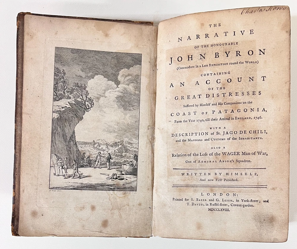 Description : John Byron The Narrative of the Honourable John Byron (Commodore in a Late Expedition round the World) Containing an Account of the Great Distresses suffered by Himself and his Companions on the Coast of Patagonia, from the Year 1740, til their Arrival in England 1746. 1st Edition, Rebacked, raised bands, gilt title on label on spine. Fold out maps. Published S. Baker and G. Leigh; T. Davies London 1768 Approx. Measurements: 5.5 x 8.5 x 1.625 inches Condition: Fair condition, some erosion to cover, mostly stablized by rebacking. toned and foxed pages, dust soiled edges, pen and pencil notations PHB1704sch We have a fine selection of quality items for sale at Amphora Art & Antiques. International as well as domestic customers are welcome - please contact us with questions regarding shipping or listings, and we will assist you quickly. All items can be inspected in-person or are available for pickup from our large Wilmington, CA warehouse with no additional fee or charge. The authenticity of all items listed are guaranteed to be as represented - all efforts are taken to ensure accurate and descriptive condition reports and photographs. We reserve the right to use another shipping carrier other than what is listed to ensure your purchase arrives safely. Fedex cannot ship to a P.O. Box. Please contact us before or upon purchase if you have a preferred shipping carrier.