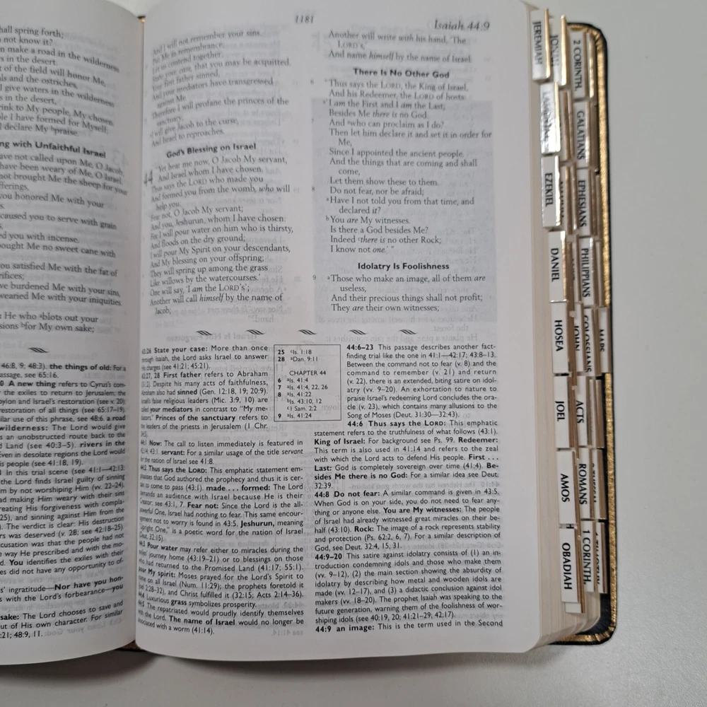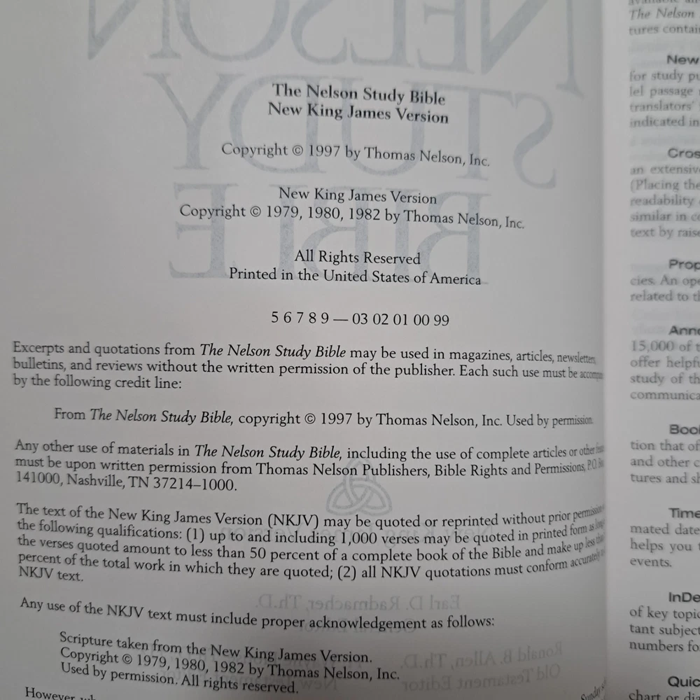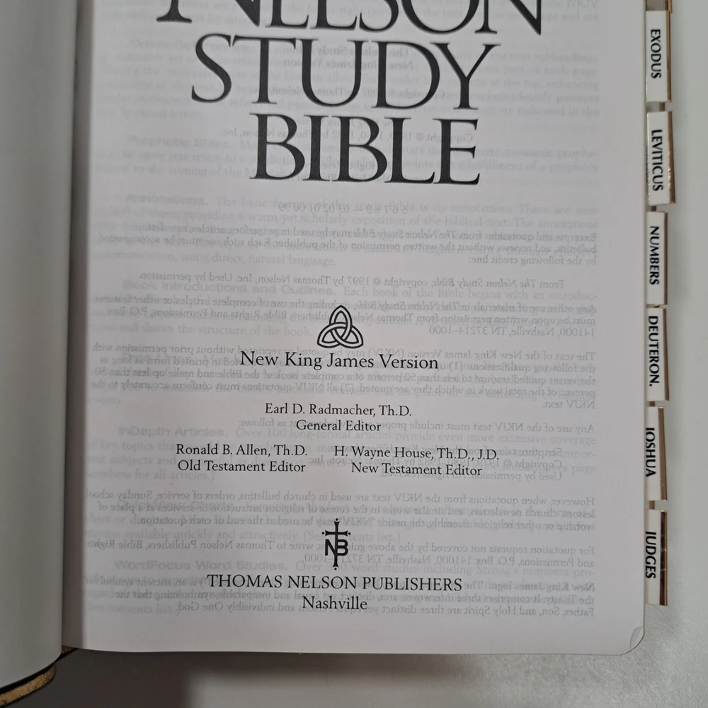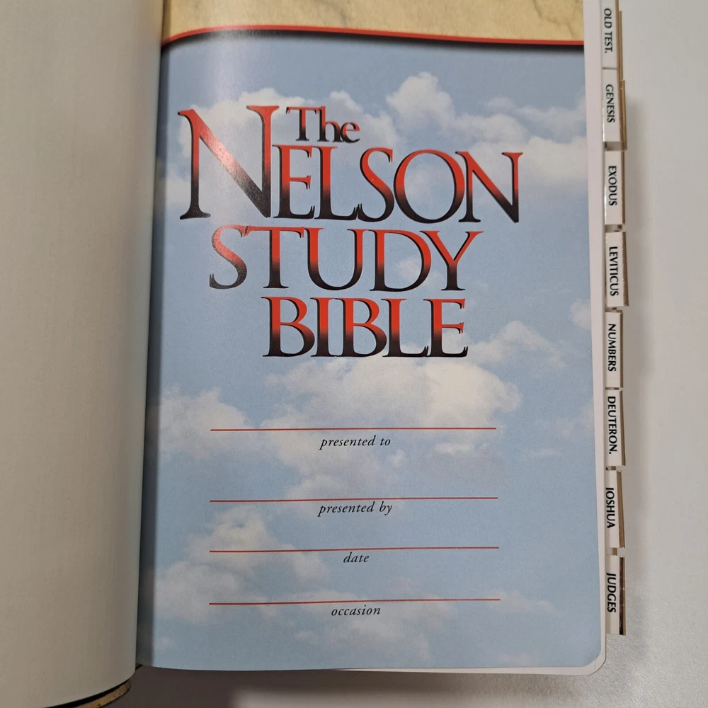 Dive deep into the scriptures with The Nelson Study Bible, a special edition NKJV (New King James Version) that's as enriching as it is elegant. Crafted with genuine leather and featuring an extensive index, this hardcover edition published in 1997 by Thomas Nelson Incorporated offers an immersive experience for both personal study and scholarly reference. This particular copy stands out with its sizable dimensions, measuring 10 inches in height, 6 inches in length, and 2 inches in width, ensuring it's a prominent yet comfortable companion for your daily readings or academic pursuits. With its focus on spirituality and religious themes, it's an invaluable resource for anyone seeking a deeper understanding of Christianity and biblical history. Actual Size 9-5/8" x 6-1/2" x 2" Genuine Leather