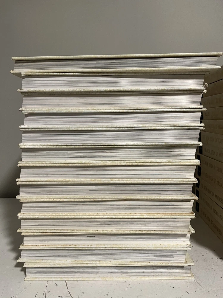 This is a complete set of The New Book of Knowledge Annual Edition Encyclopedia volumes, covering 1979 to 2002. The encyclopedia is a leather-bound hardcover book set written by Grolier and published by Encyclopedia Britannica. It covers a wide range of subjects and is perfect for educational and reference purposes. The set includes volumes on various topics, such as science, technology, history, and more. The language of the encyclopedia is English, and it is an excellent resource for anyone looking to expand their knowledge.