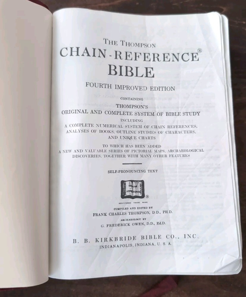 The New Chain-Reference Bible 4th Improved Edition KJV Thompson Bible Study 1964. Shipped with USPS Media Mail....