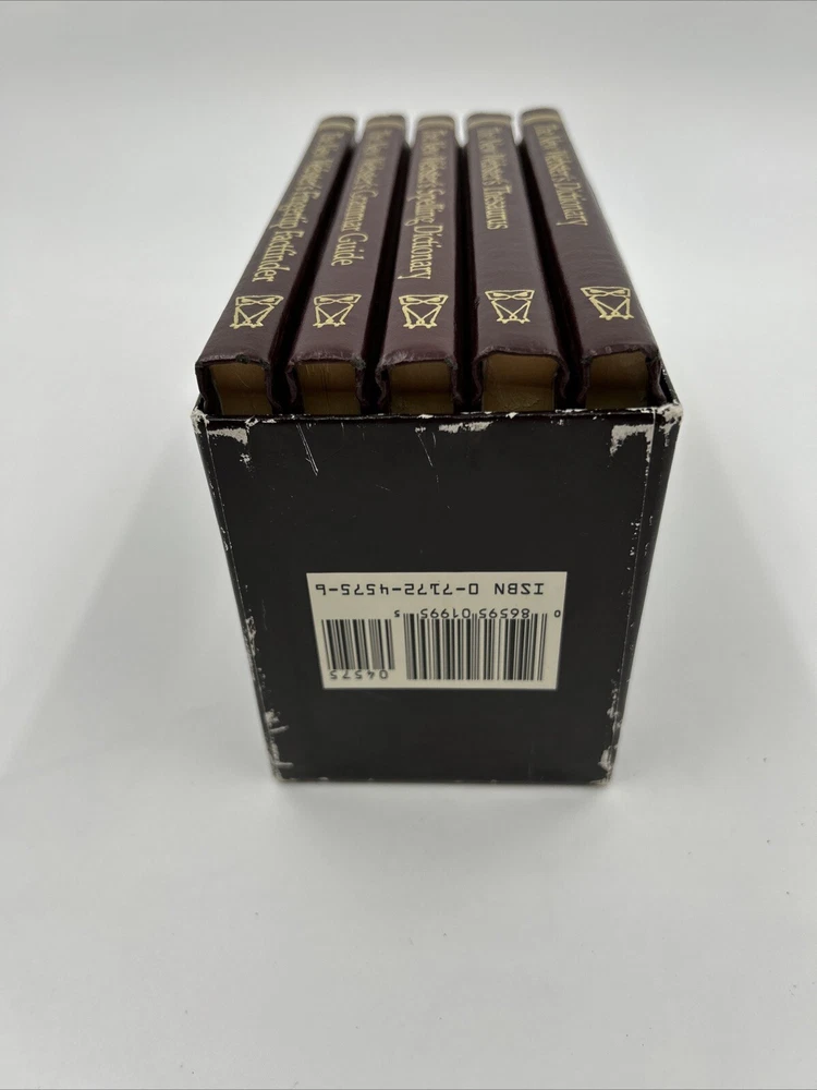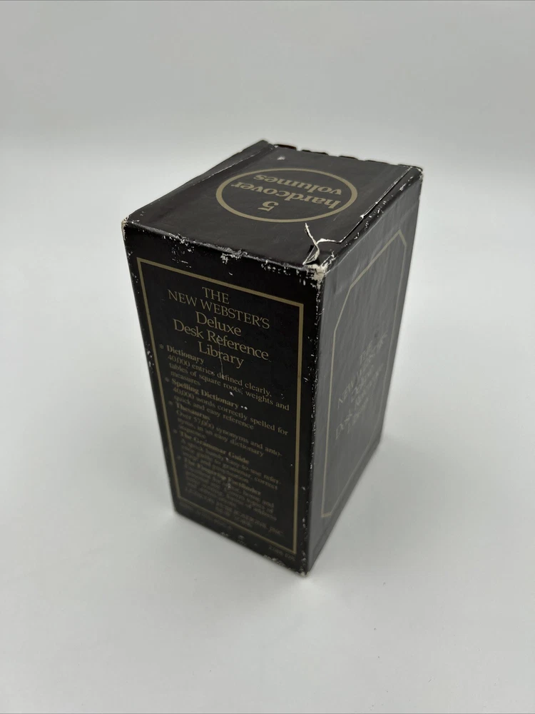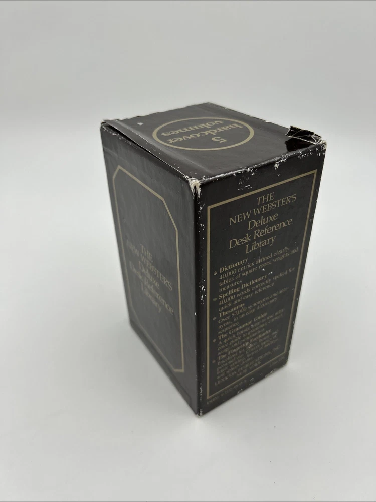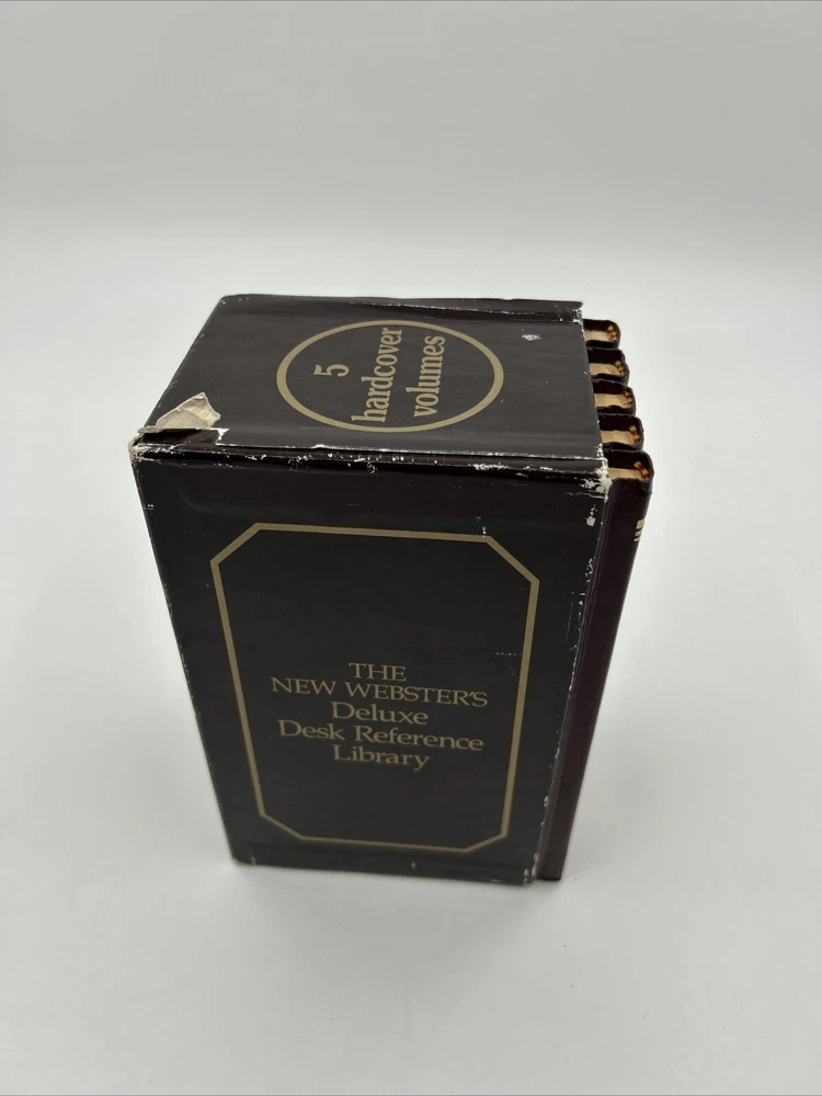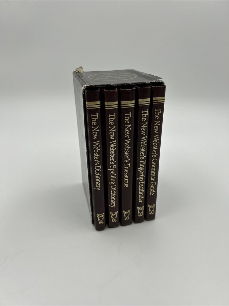 Condition: Good to Very Good. Book labeled Fingertip Fact Finder had a paper clip at the top which caused some wrinkles. Box shows some shelf wear. See photos. AI Generated Description: Enhance your vocabulary and grammar skills with this 5-book slipcase set of The New Webster's Deluxe Desk Reference Library. Published in 1986, this hardcover dictionary is a must-have for any book lover. Written by multiple authors, including Madeline Semmelmeyer, this dictionary is a comprehensive reference guide that covers a wide range of subjects. The dictionary is perfect for anyone interested in improving their language skills, and it is an excellent addition to any book collection. This set is a great gift for students, teachers, or anyone who loves books. Get your hands on this valuable resource today!