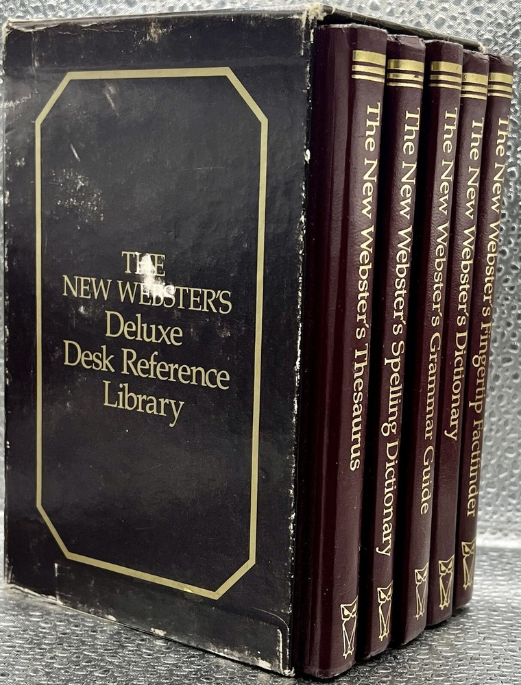 The New Webster's Deluxe Desk Reference Library: Set of 5 Hardcover Volumes - Enhance your vocabulary and language skills with The New Webster's Deluxe Desk Reference Library. This set of five hardcover volumes is a valuable addition to any reference collection. The books are written in English by Donald O. Bolander and published by Lexington Books in 1986. The books are intended for adults and cover a wide range of topics including dictionary, narrative type, genre, and more. The faux leather bound format adds a touch of elegance to your collection. The books are vintage and were published in the United States. They belong to the category of Books & Magazines and are a must-have for anyone who loves reference books. This book set comes exactly as pictured. The book set in the photos is the exact item you will receive with your purchase.