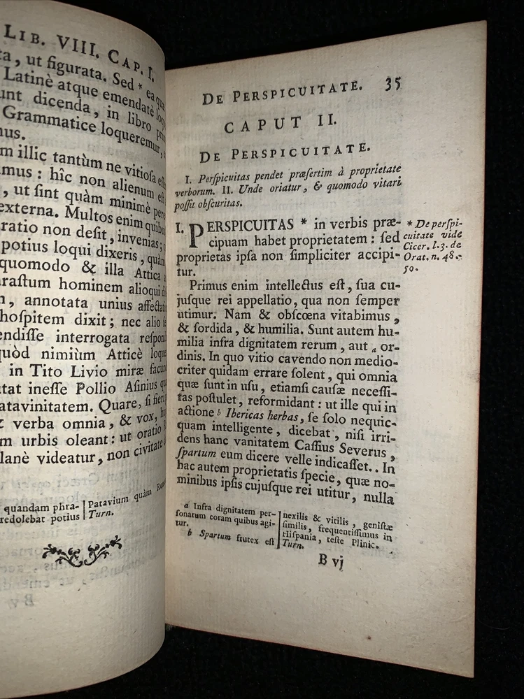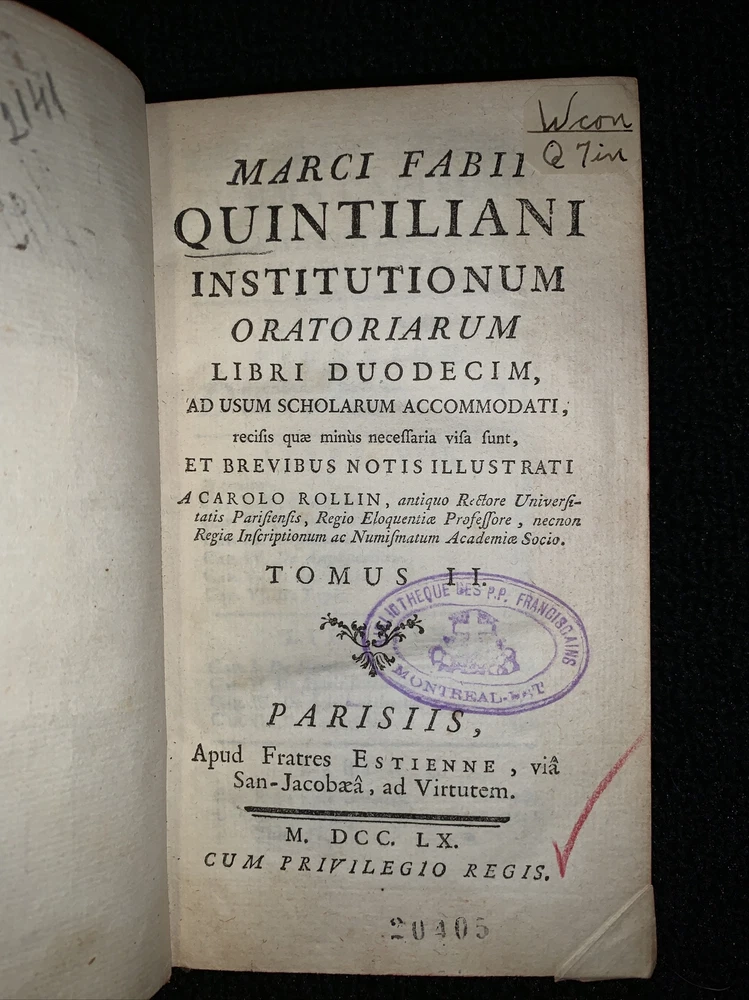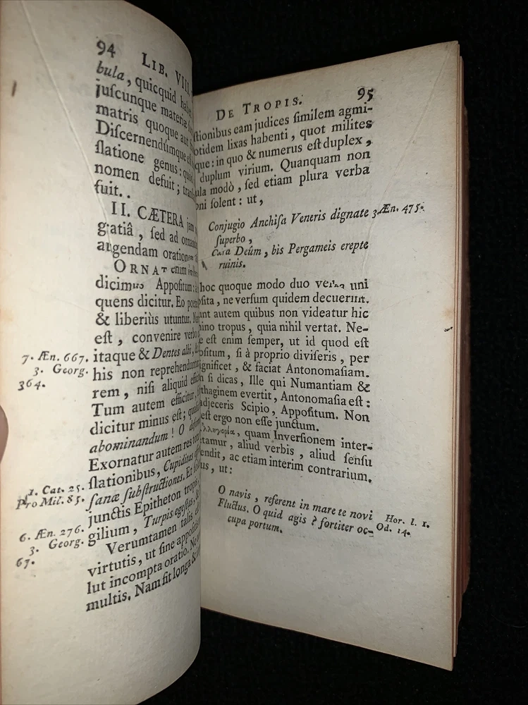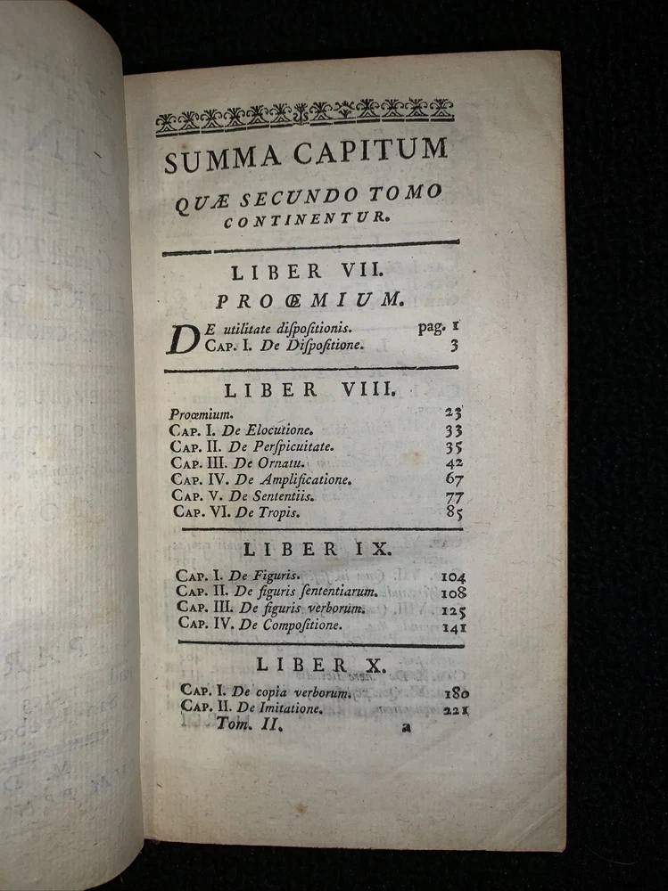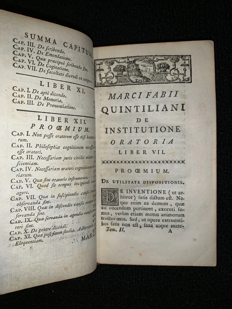 Latin book, Marcus Fabius Quintilian's oratory of twelve books volume 2 1760. Damage to front cover, slightly loose back cover, 449 pages plus index. 6 3/4x4x1”. Nice old book smell. Please check out pictures and ask any questions you may have before buying. I try my best to accurately describe all items and their flaws so you know exactly what you are buying. I can COMBINE SHIPPING on most items. If you like what you see, please FOLLOW my store because I have so much more to list. Thanks for looking! Inventory #1359a