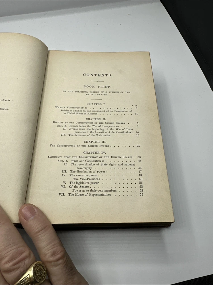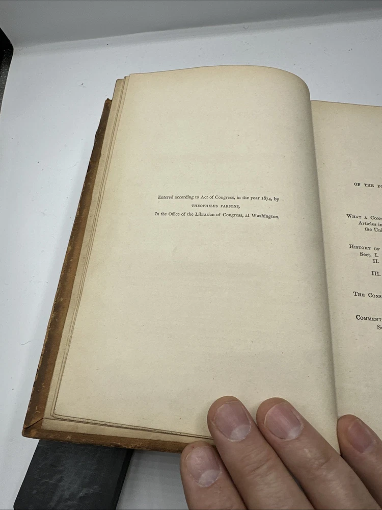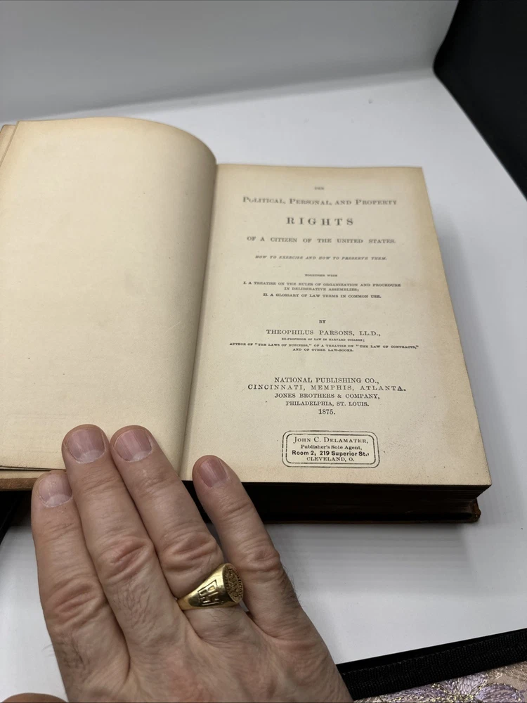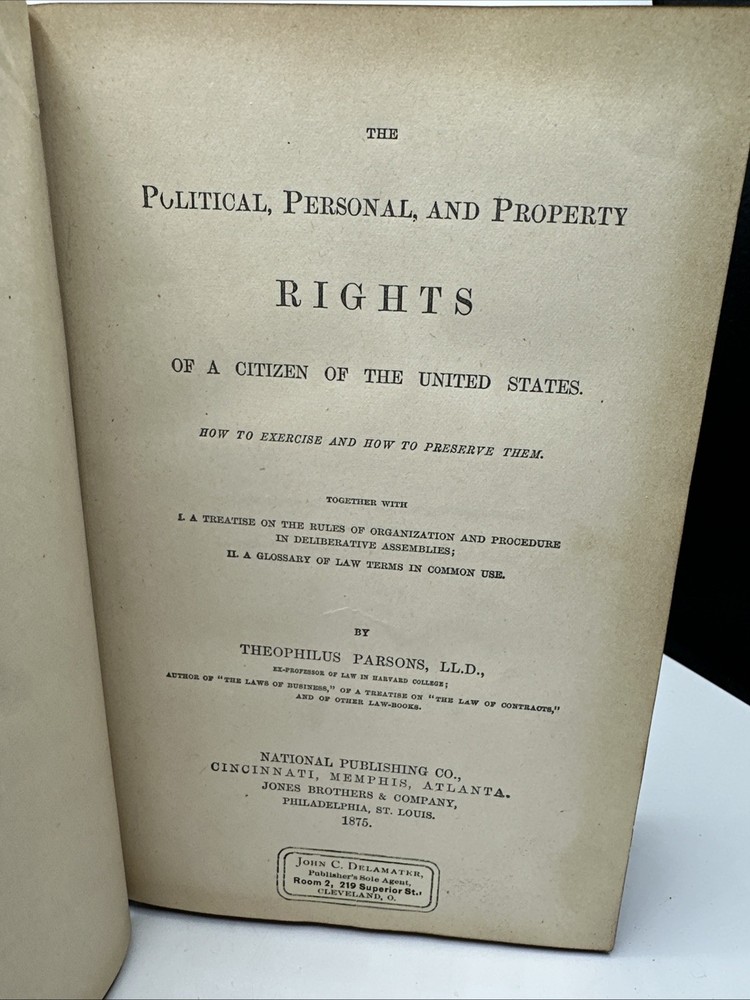 This is a rare and valuable collectible book from 1875, written by Theophilus Parsons, LL.D. and published by National Publishing Co. in Cincinnati, Ohio. The book is bound in beautiful leather and provides insight into the political, personal, and property rights of a citizen of the U.S. during that time. It is an original copy and written in English, making it a must-have for any collector of North American history, political history, or biography and autobiography. The book is also a testament to the craftsmanship of the era and would make a great addition to any library.