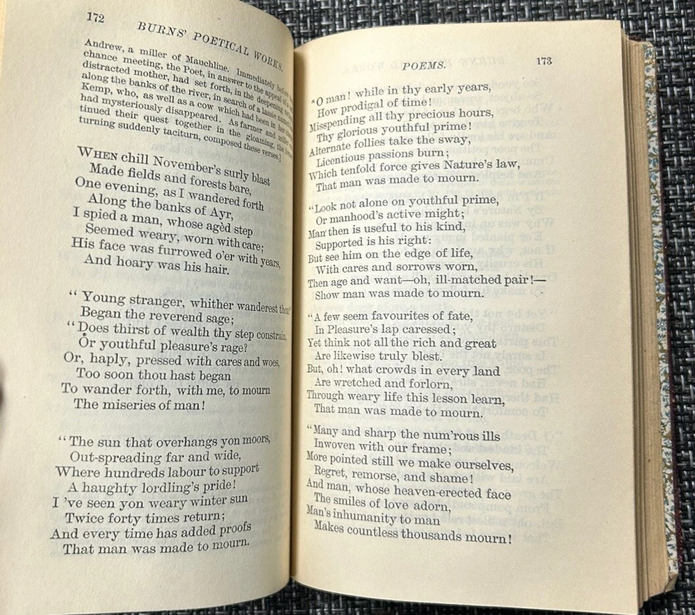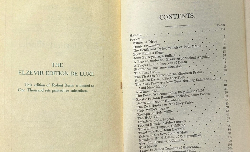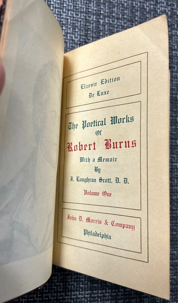 This is a beautiful old book. It shows some obvious wear, but still holding together pretty tightly for the age. Made by John Morrison Company out of Philadelphia. Includes a memoir by L Loughean Scott DD. Volume one of the Elzevir Edition De Luxe. This edition of Robert Burns is limited to 1000 sets printed for subscribers. In other words, this is likely one of a kind and extremely rare piece for the age. Any Robert Burns collectors will appreciate this, and is extremely rare given the age. The binding is holding together well and has been well maintained, however it does show some aging and wear. Overall not bad. I’m guessing mid to later 1800s but not entirely sure of the age. Thank you for looking .