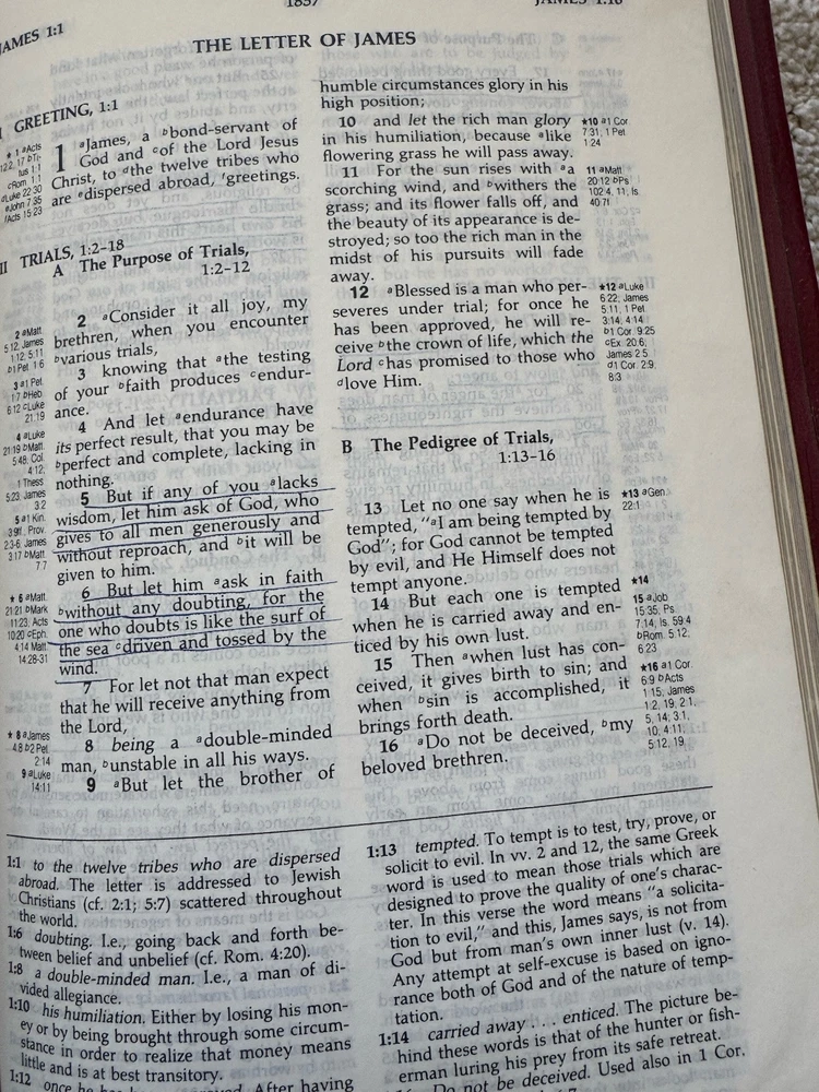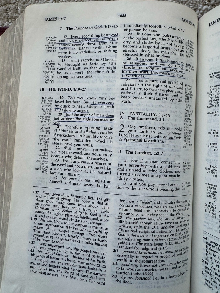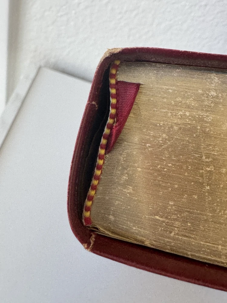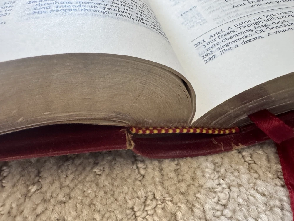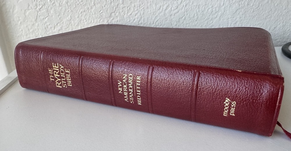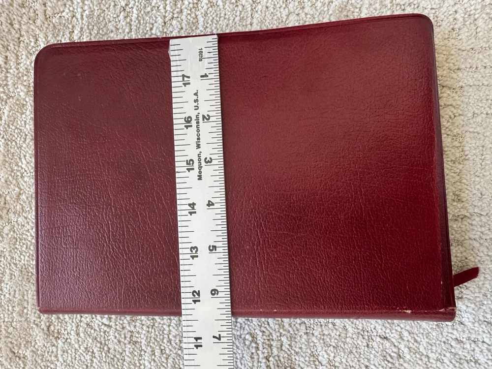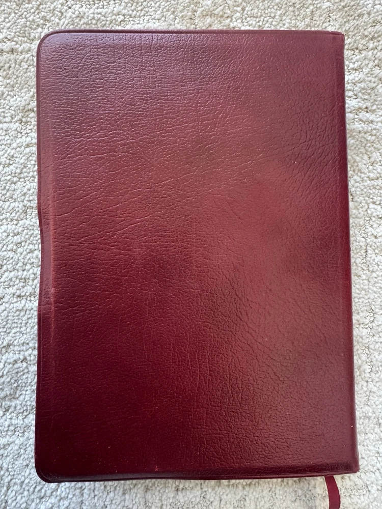 Has some pen notes in margins and some ink underlining as shown in photos This is very minimal on a page if so. I would guess maybe there are 20 or so pages with these markings inside, just by flipping through. Leather binding has some scuff marks see photos for this please No highlights No odors Ships in box with bubble wrap BIBLBX