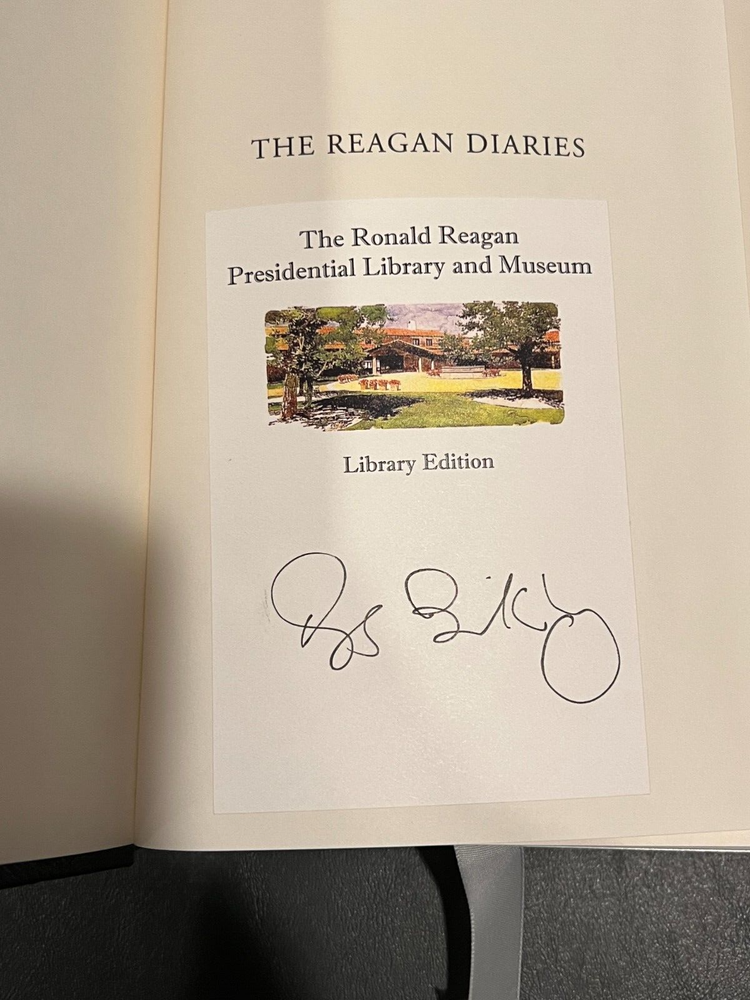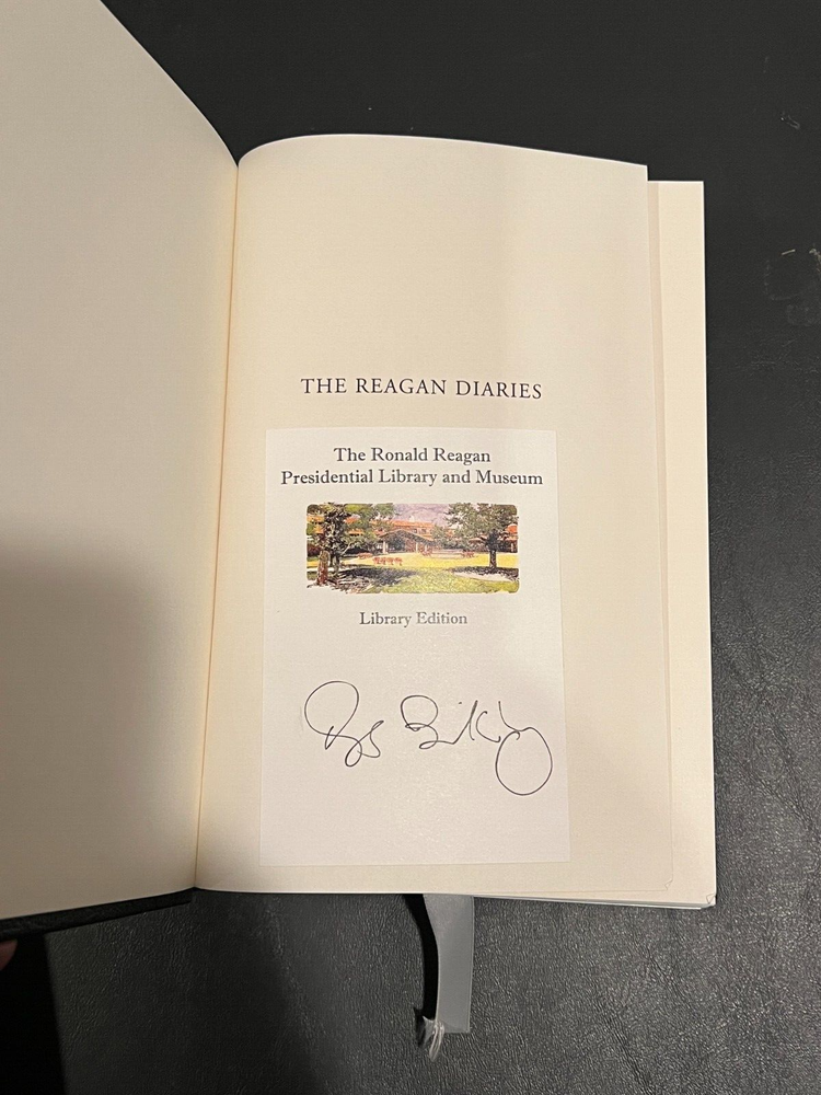 The Reagan Diaries By Ronald Reagan Leatherbound with Slipcase Limited Edition Ronald Reagan Presidential Library and Museum Plate Hand Signed By Editor: Douglas Brinkley