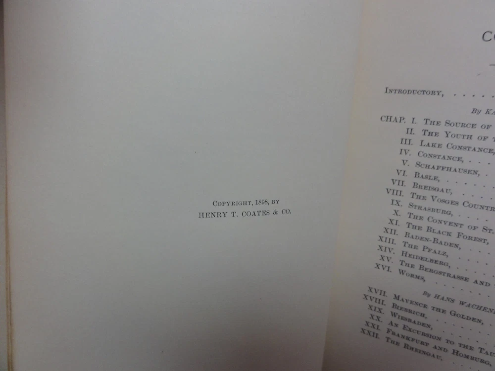 Title: The Rhine From its Source to the Sea Author: G. C. T. Bartley Publication year: 1898 Publisher: the John Winston Co. Book description: hardcover Book condition: Previous owner label in front cover. Small amount of underlining on title page. See photos for additional condition. Illustrations: Black & White From the Introduction: the great rivers of the world must have added a charm to Nature even in the first era of Creation. Shelf: ES29
