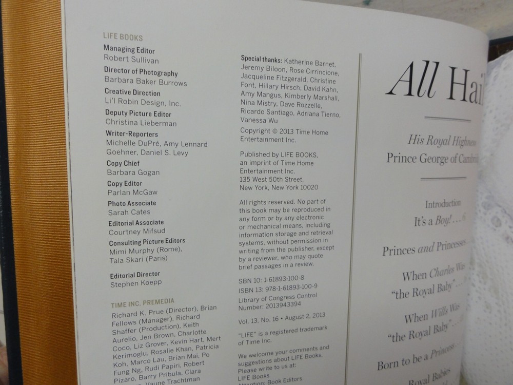 Title: The Royal Family / Prince George of Cambridge Author: Time Life Publication year: 2013 Publisher: Time Life Book description: hardcover Book condition: No writing in book. No creased or torn pages. See photos for additional condition. Illustrations: Black & White and Full Color Photos Tribute book to Prince George Shelf: ES24