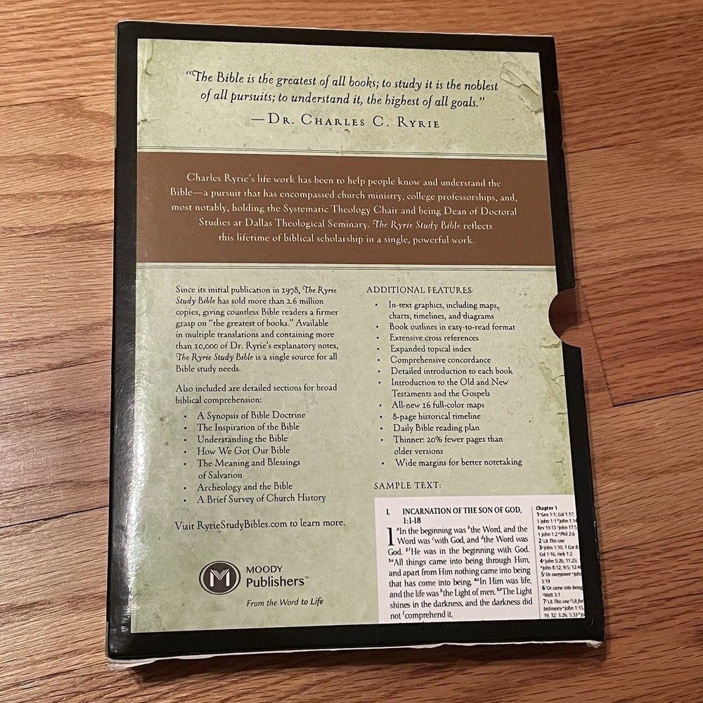 This study Bible is a fantastic resource—the soft-touch leather feels great, and the red-letter text makes Jesus' words stand out beautifully. The notes by Ryrie are insightful yet easy to follow, perfect for deeper study. The NASB translation is clear and accurate, and the layout is clean and readable. Highly recommend for anyone looking for a reliable, well-designed study Bible!