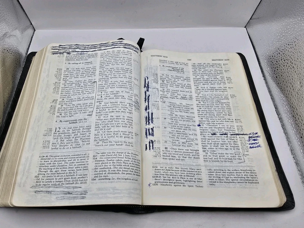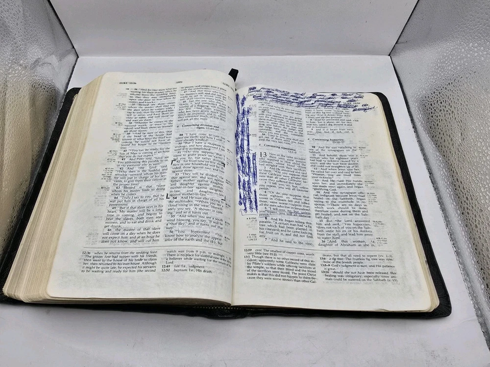 The Bible has numerous markings on the inside. Please look over the photos for details. Thanks for looking.