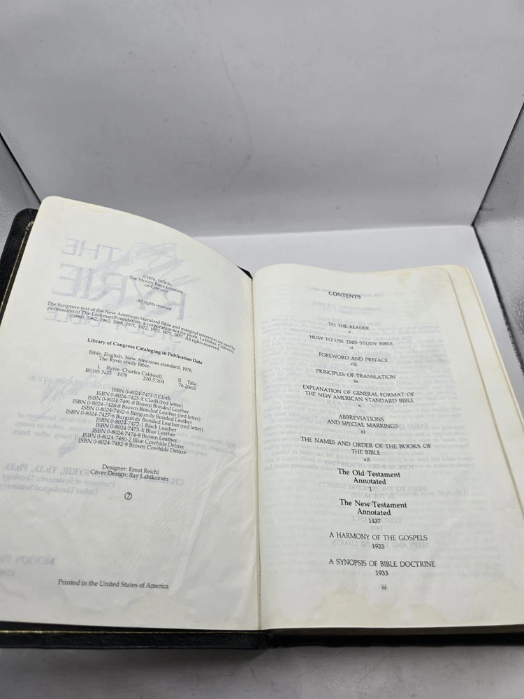 This vintage Ryrie Study Bible is a treasure for collectors and believers alike! The 1978 NAS edition from Moody Press features rich leather binding and insightful study notes. While it has some markings inside, they add character—perfect for those who appreciate a well-loved Bible. The photos give a clear idea of its condition. A fantastic find for serious study or nostalgia!