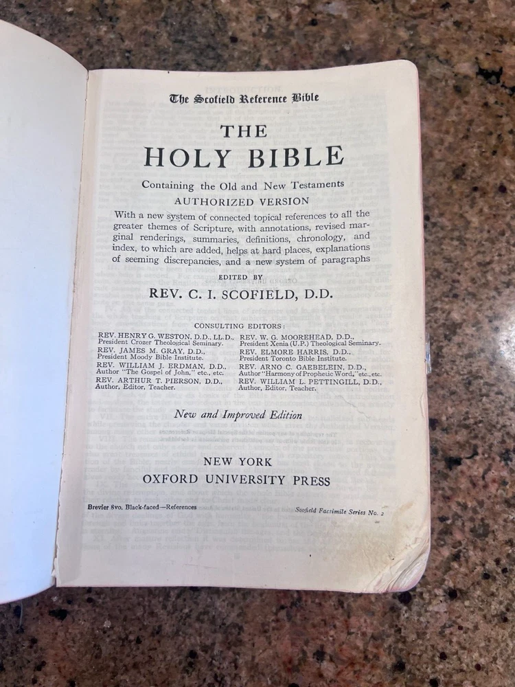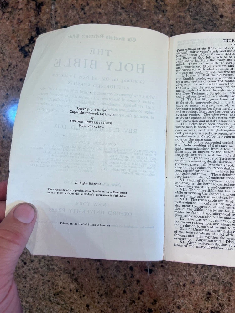 The Scofield Reference Bible Holy Bible Concordance Rev. C.I.SCOFIELD,D.D.T 1945 Old bible. Name inside. Clean pages.