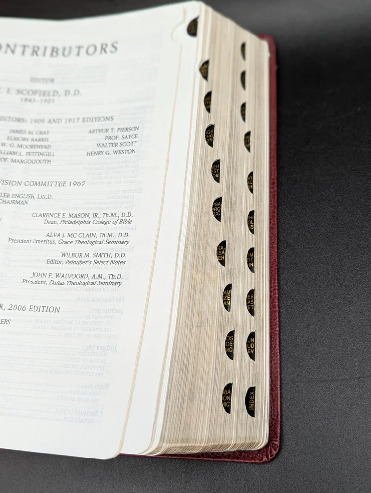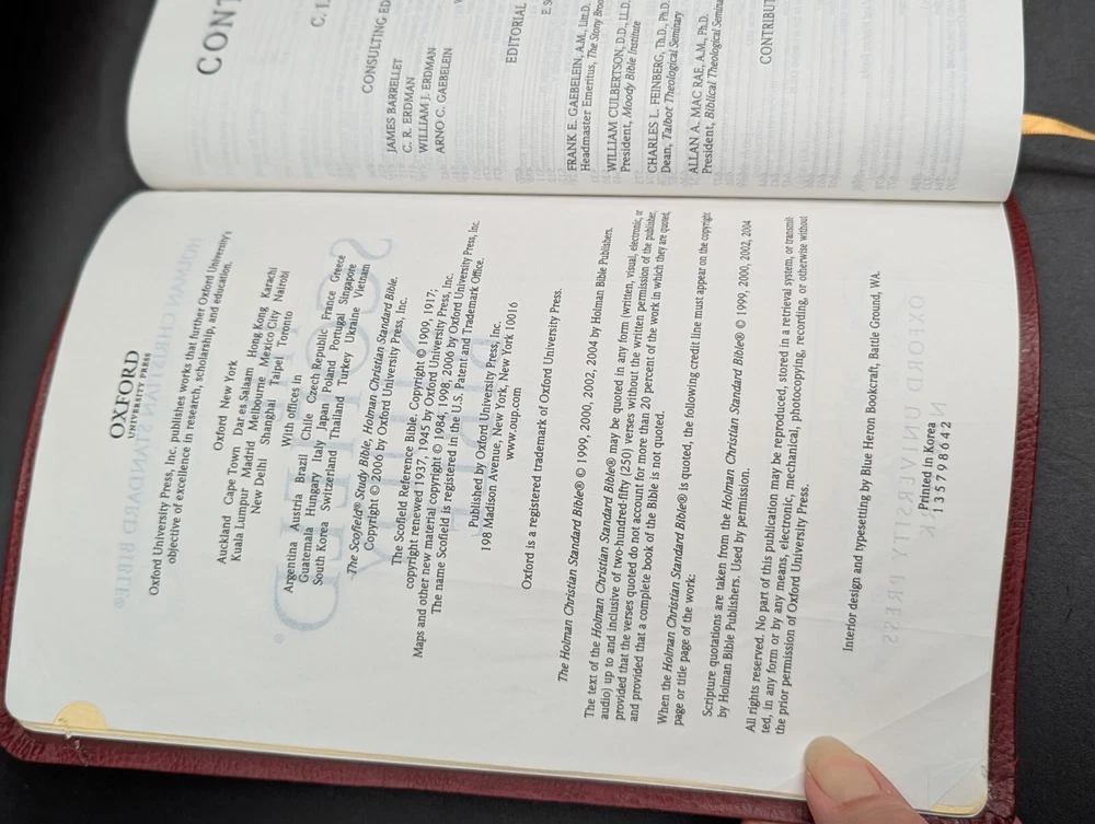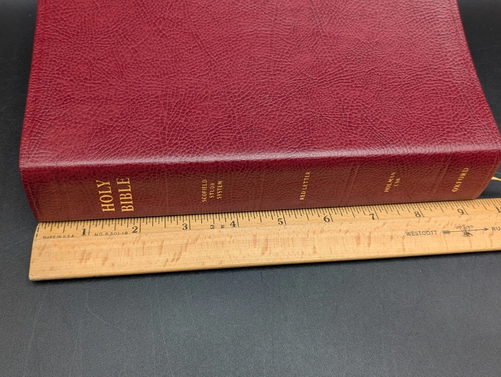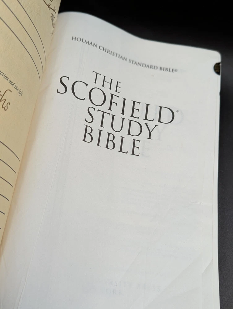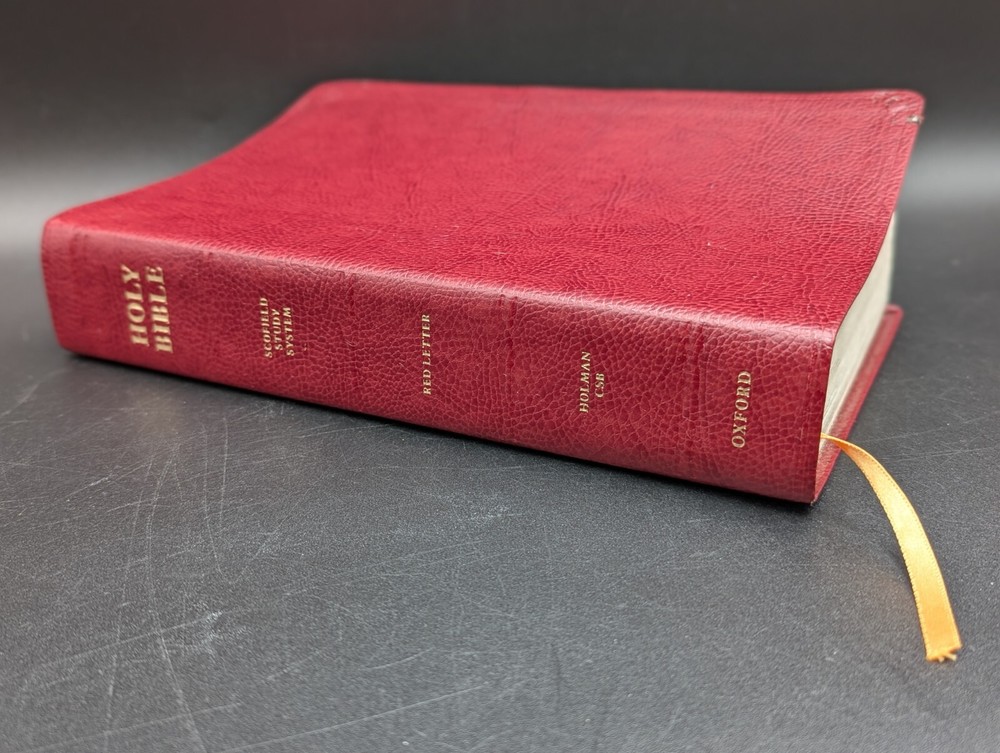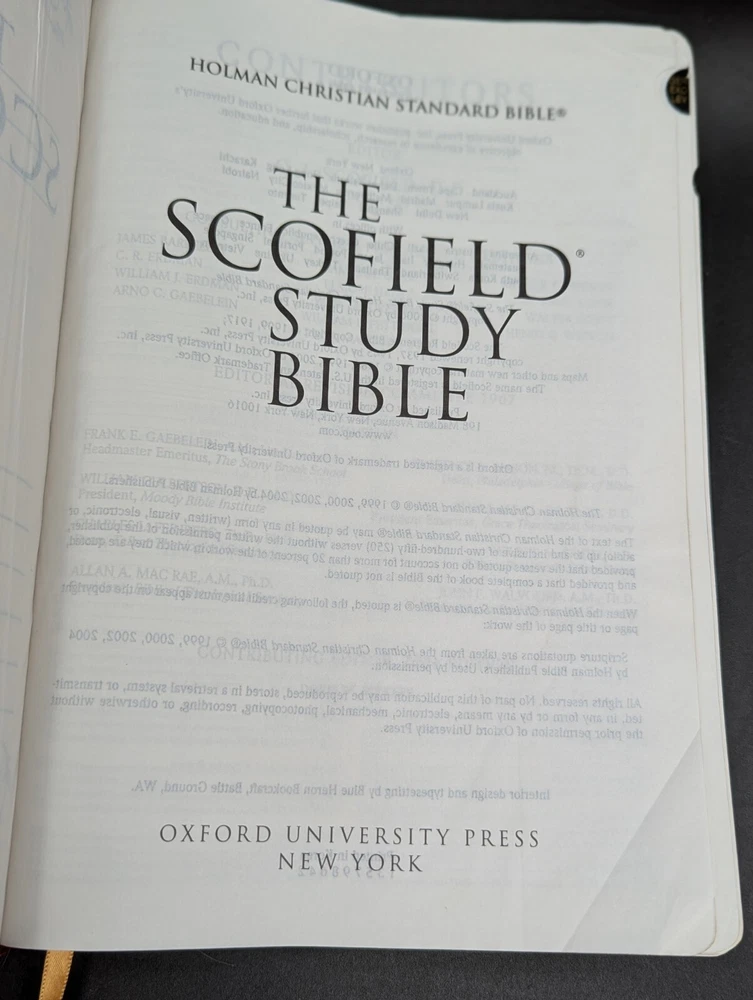 The product is "The Scofield Study Bible System HCSB Holman Christian Standard Bible Red Letter Edition" published by Oxford University Press in 2006. It is a study Bible in bonded leather format, featuring red letter text. Authored by D. Rikkers, the Bible includes 2000 pages and is designed for biblical studies and Christian Standard Bibles. With a focus on study and religion, this edition is indexed and offers a comprehensive resource for those seeking deeper understanding of the Bible. This book was previously owned and has a few highlights and notes, but not many. There are some nibbles on the corner of the front cover and other minor wear. See photos for lots of details.