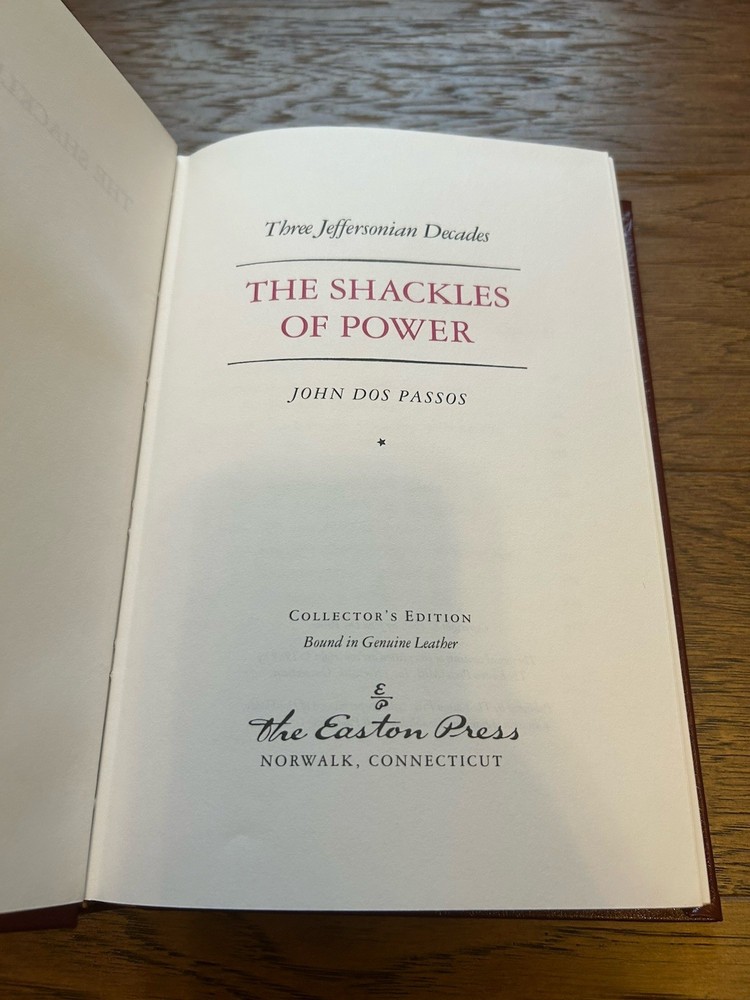 The Shackles of Power; Three Jefferson Decades, by John Dos Passos Easton Press Collector’s Edition Great condition...