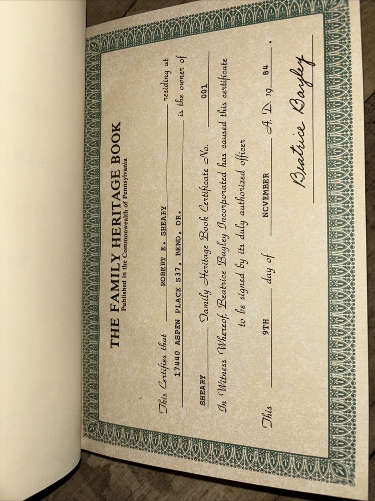 The Sheary Family Heritage Book, 1984 Genealogy, HC, Beatrice Bailey, Inc. Condition is Like New. Shipped with USPS Media Mail.