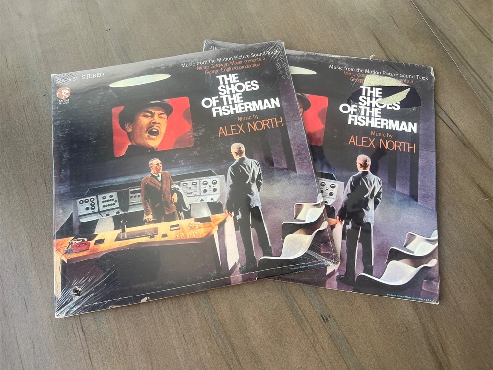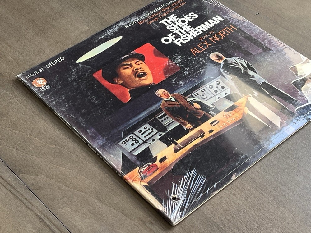 For sale is a sealed vinyl LP of the motion picture soundtrack for "The Shoes Of The Fisherman" from 1968. The album features Golden Globe winning and Oscar Nominated music by Alex North and is classified under the genres of movie scores and soundtracks. The record is in mint condition, both the inlay and sleeve. The 33 RPM LP album has a gatefold cover and is still factory sealed. The record grading is Mint (M) and the sleeve grading is Mint (M). The album is a classic film score/soundtrack from the 1960s era, and is a great addition to any vinyl record collection. Enjoy!