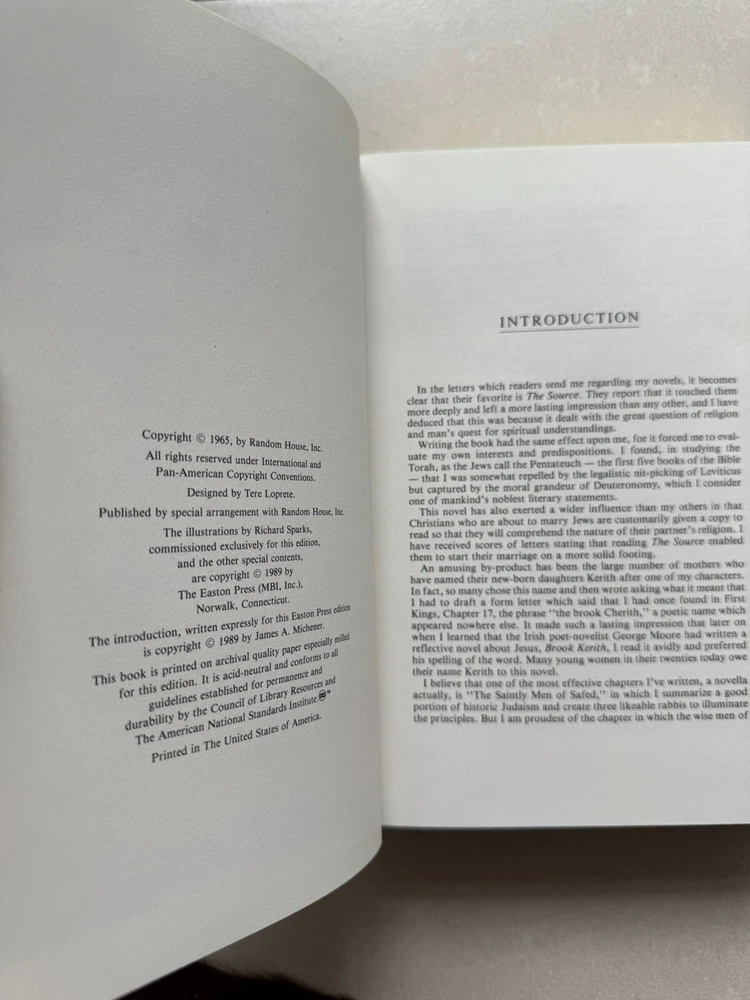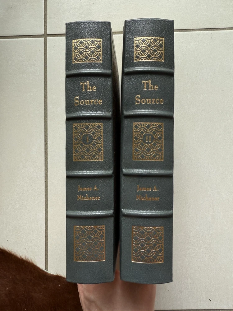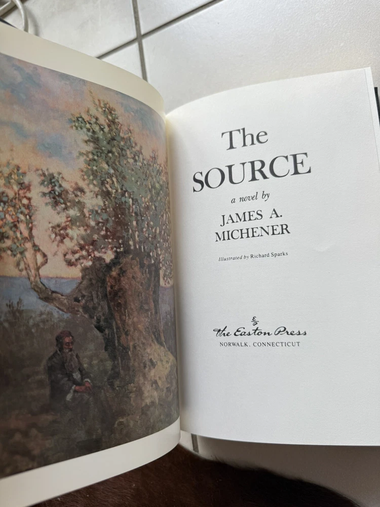 Immerse yourself in the rich historical tapestry of "The Source" by James A. Michener, a captivating novel published by Easton Press in 1989. This leather-bound, illustrated edition is perfect for adult readers who appreciate an unabridged, hardcover format. Set in the Holy Land, this historical fiction masterpiece weaves a compelling narrative that explores the depths of literature, making it a must-have for any book lover's collection.