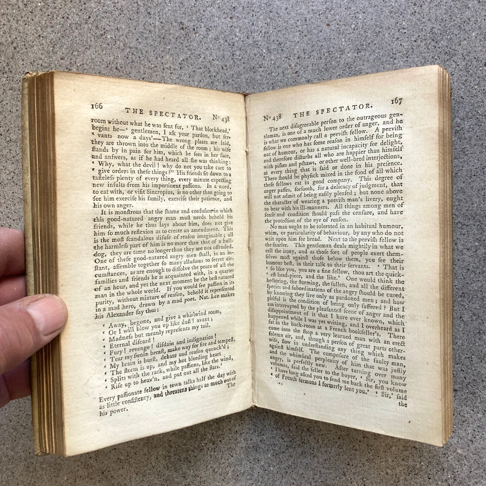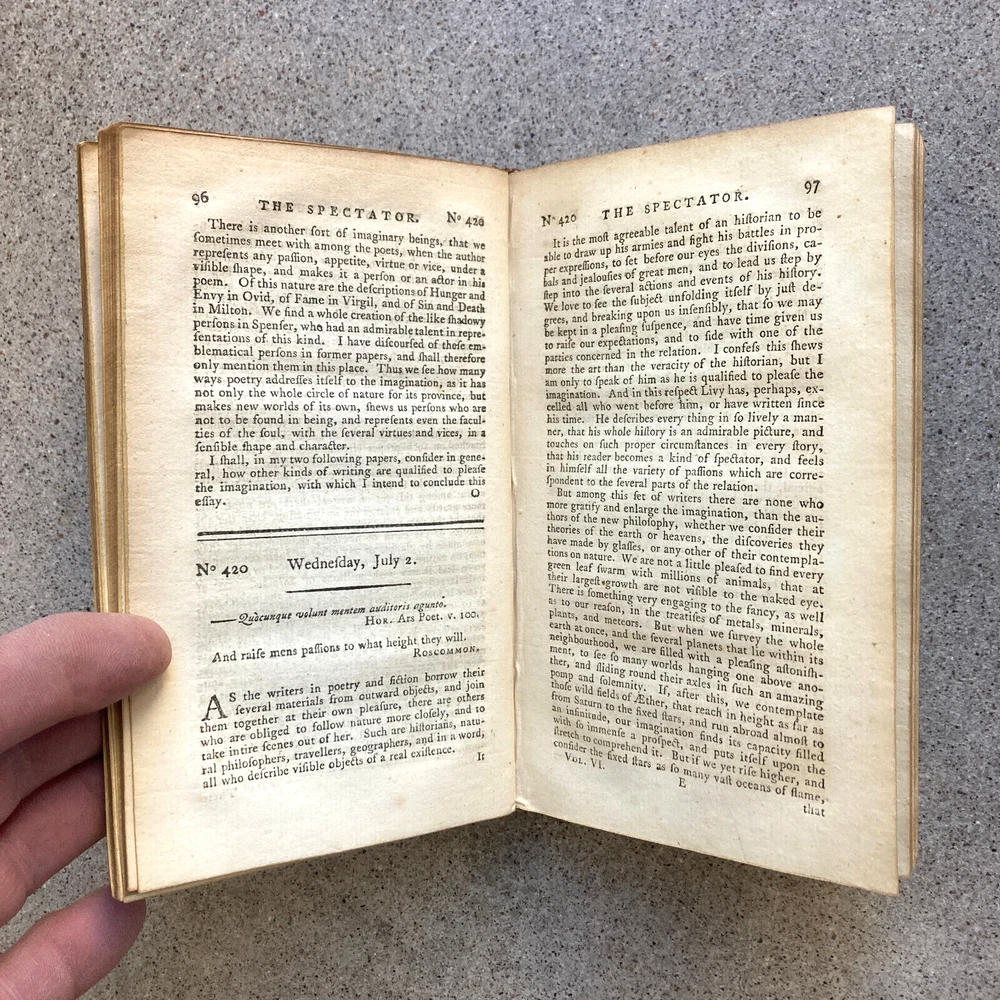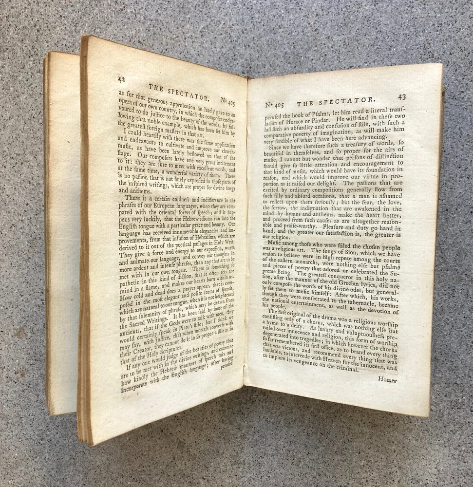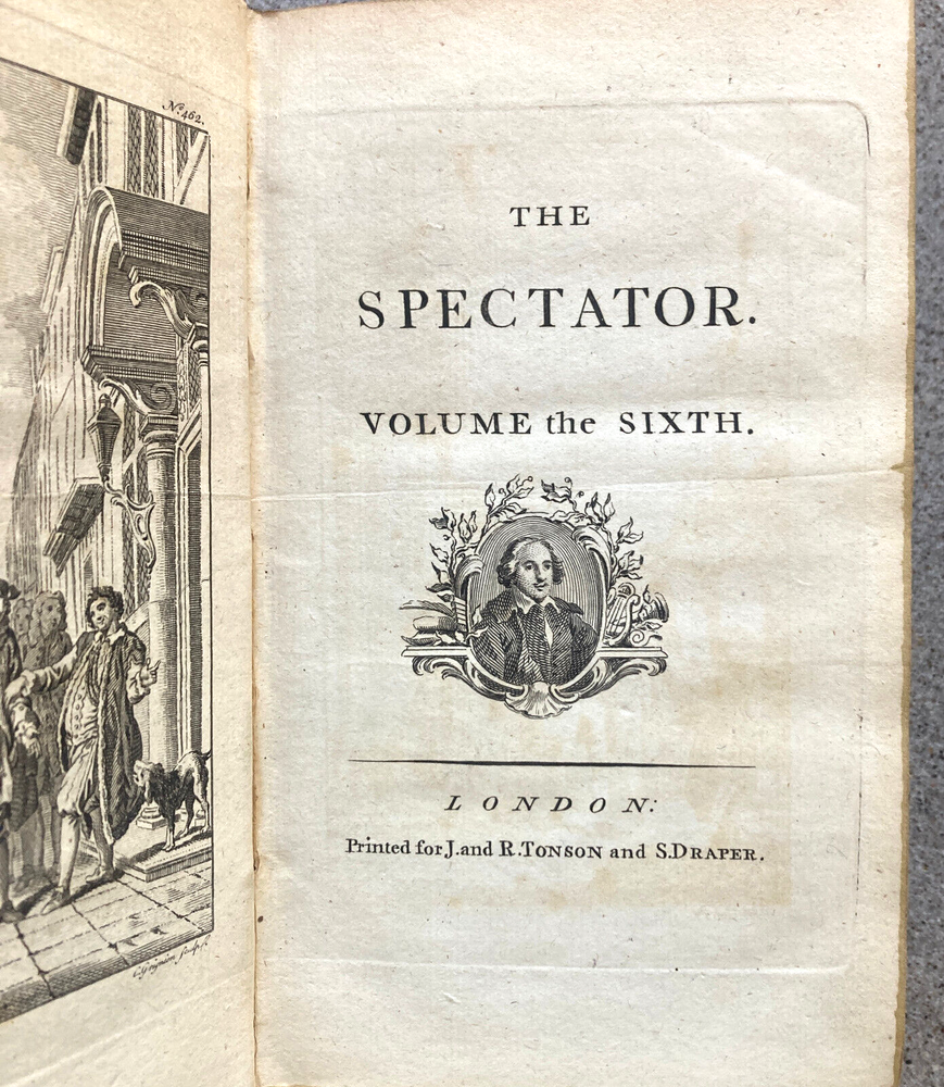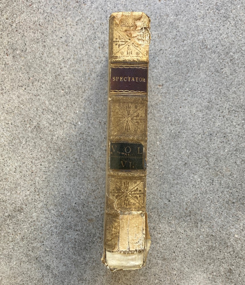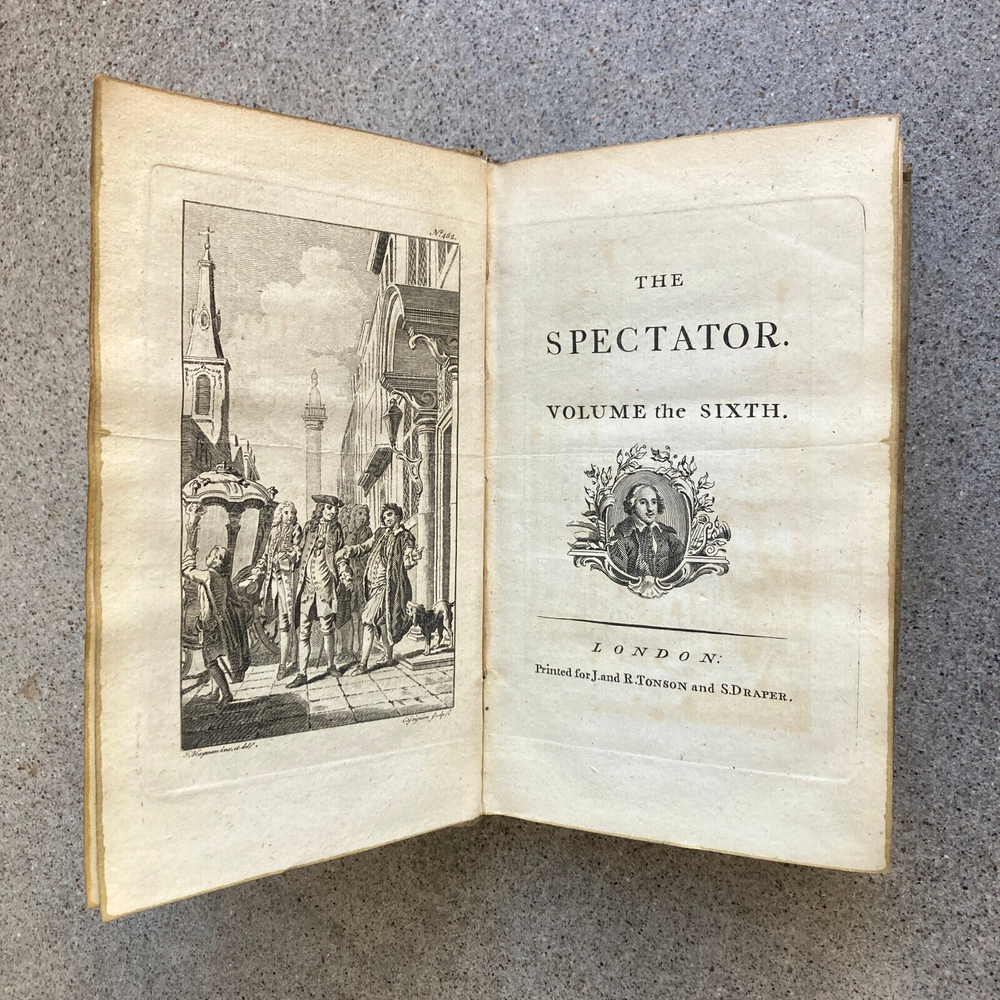 The Spectator VI, 1753, leather binding—politics satire Acceptable Condition Book. Please see all photos to ascertain exact condition; please feel free to message us with questions.