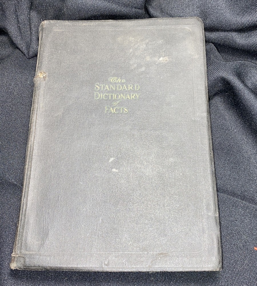 For sale is a crazy cool antique book titled, "The Standard Dictionary of Facts", dated year 1919, The Frontier Press Company, Buffalo, N.Y. A Practical Handbook of Ready Reference Based Upon Everyday Needs. (LEATHER COVER). Book is 6 5/8" x 9 5/8" x 1" in size. There are 908 printed pages. All the pages are there & intact with case binding. There is one gouge on the front cover. There is some yellowing on some of the pages due to age. Please check out all of the photos. Crazy cool information from over 100 years ago! Low price!! Thanks for looking!! T-1-Yellow lid