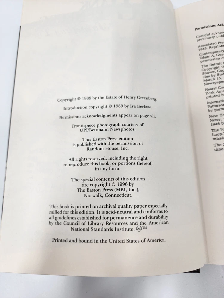 The Story Of My Life by Hank Greenberg. The Easton Press 1996 Collectors Edition. Leather Bound. Used, please view all photos carefully.