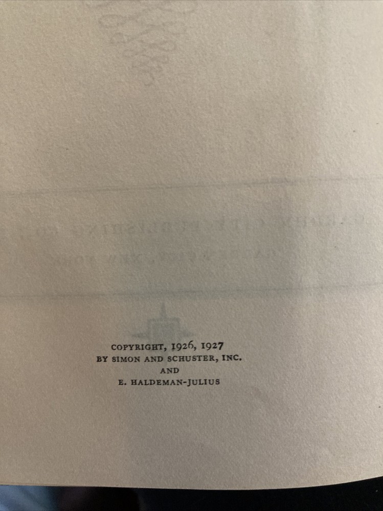 The Story of Philosophy by Will Durant. 1927. First Edition* First Print of 1927. 1926 was the "official" year of publishing however the expansion of the book by Simon and Schuster and E. Haldeman-Julius came in 1927. This is a First Print of the 1927 Simon and Schuster and E. Haldeman-Julius Publishing in 1927. See photos for description and feel free to absolutely message for additional information regarding description and especially photos to verify condition.