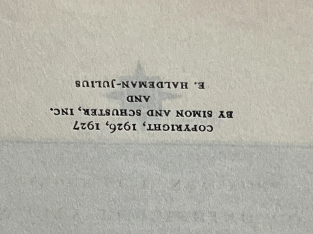 You are buying a very special edition published by Garden City Publishing Company Inc. , Garden City, New York issued by arrangement with the original publisher and copyright owner Simon & Schuster Copyright 1926, 1927 by Simon and Schuster Inc. and E Haldeman-Julius Leather binding with marbleized boards in very good condition Size: five and three-quarter inches by eight and 1/8 inches by one and 5 /8 inches thick I am not a book expert so if you notice any incorrect info please advise. In any case... Buy with confidence. 100% satisfaction guaranteed or your money back