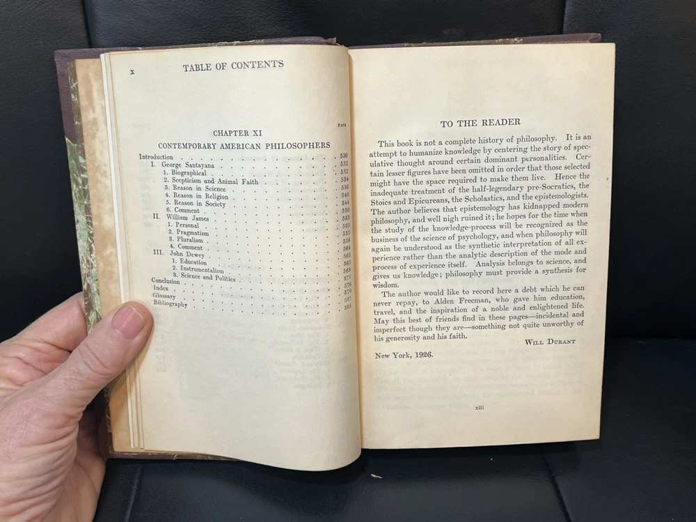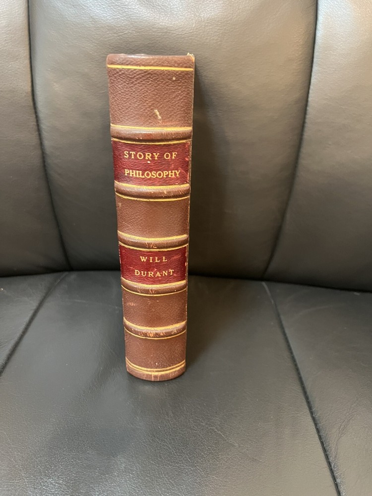 This stunning leatherbound first edition of *The Story of Philosophy* is a true collector's gem! The marbleized boards and tight binding give it a luxurious feel, while the crisp pages and vintage charm make it a must-have for any philosophy lover. The size is perfect for display, and the condition is impressive for its age. A rare find that adds elegance to any bookshelf—highly recommended for enthusiasts and collectors alike!