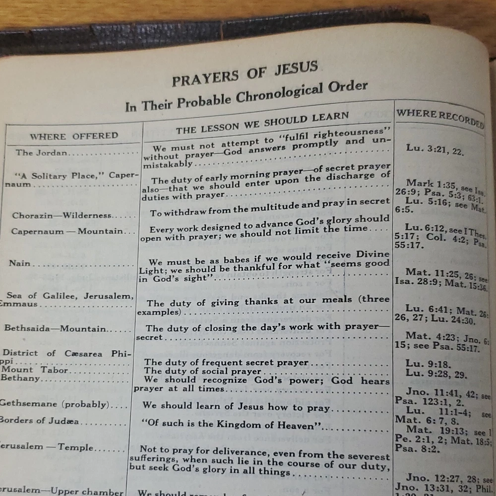 Estate sale find. When I picked this book up I assumed it was a Bible, the right size, the right shape, the right look. The leather cover is wore and missing edge pieces. Inside are some ripped pages repairs and missing pages. Leafing through the book there is much useful information if you are interested in Bible study. Miracles of the Old Testament, miracles of Jesus, answered prayers, parables of the Old Testament, parables of Jesus, laws of the Bible, just a name a few. Weight is 2 lb 6 oz before packaging. 6½ × 10 × 1½" Offers always considered Thank you for looking. PS1-4aa.050224.24.9