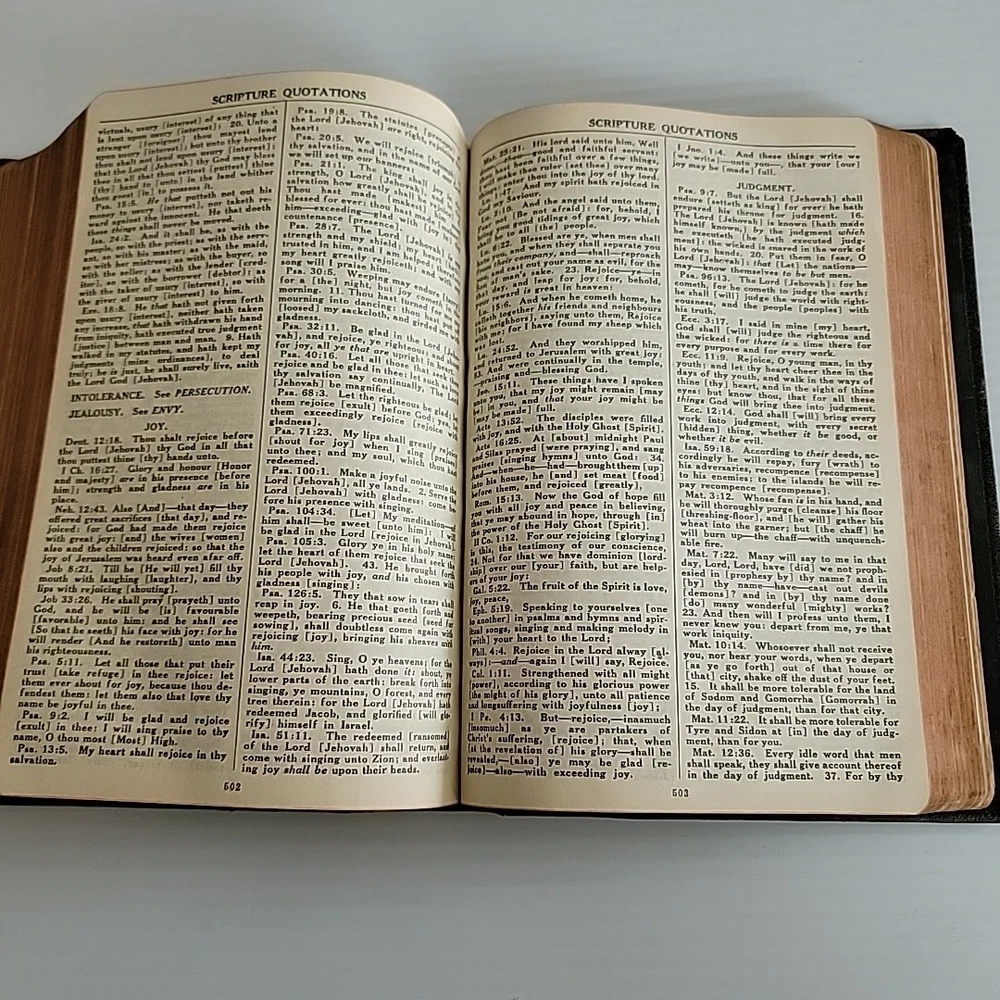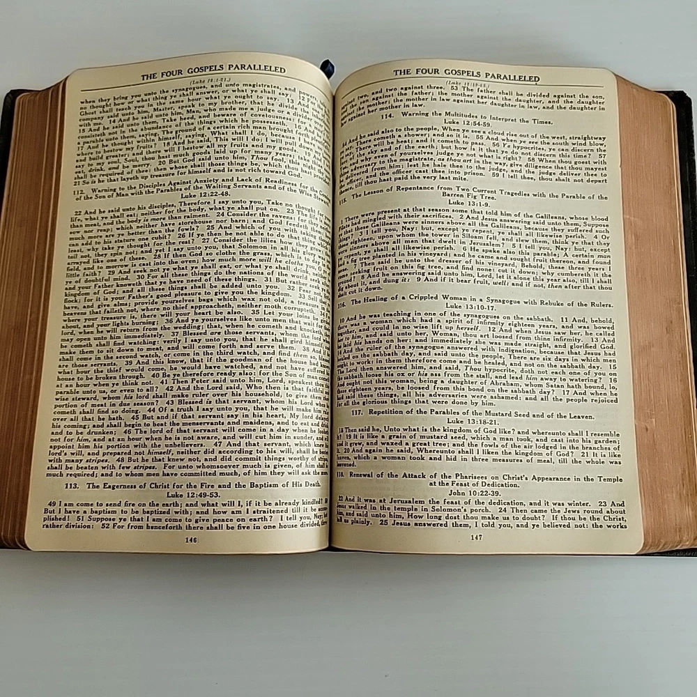 Please review photos as they serve as part of the description. The System Bible Study Revised and Enlarged Edition based on KJV Black Leather is a valuable resource for those interested in religious history. This leather-bound study guide, published by The System Bible Company in 1941, contains 786 pages of informative content. It is written in English and intended for young adults and adults. The book measures 6.25 inches in length, 9 inches in height, and 2.25 inches in width, with a weight of 3 pounds. It is a vintage edition and features a top edge gilt. The book is categorized under "Books & Magazines" and "Books" and has a genre of "Religious & Spiritual". Purchase this rare and insightful study guide today.
