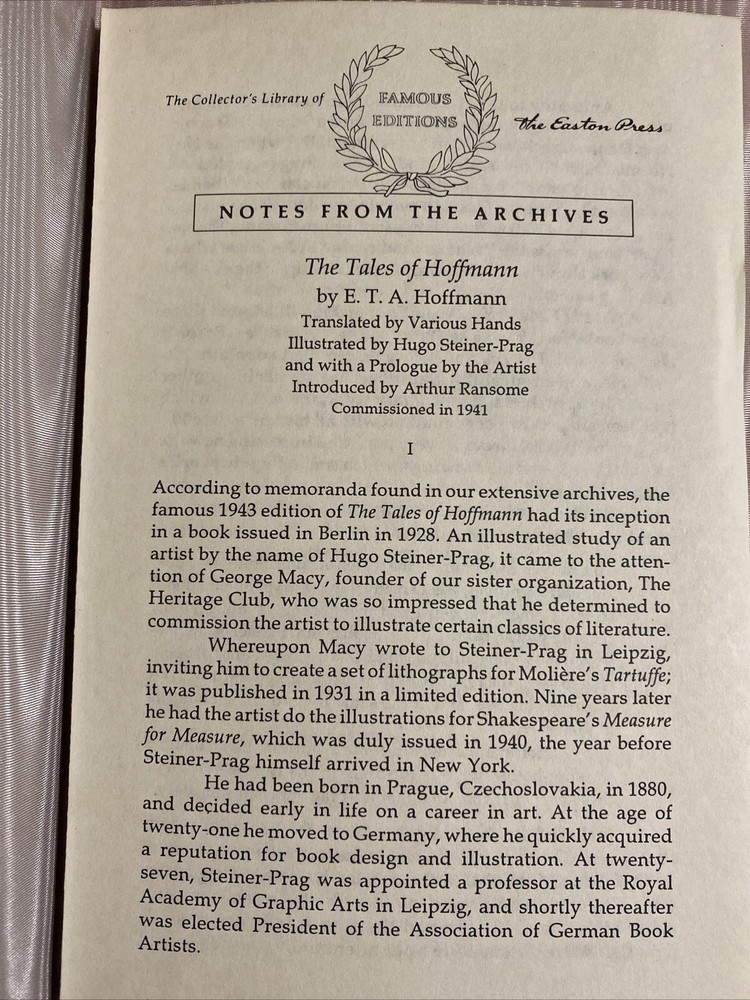 The Tales of Hoffman Easton Press Famous Editions E.T.A. Hoffman Leather HC. Shipped with USPS Media Mail....