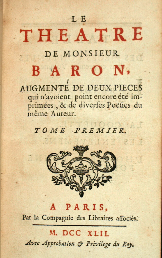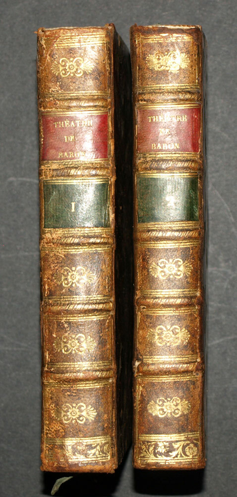 LE THÉÂTRE DE MONSIEUR BARON Augmenté de deux pièces qui n’avoient point encore été imprimées, & de diverses poésies du même Auteur. A Paris Par la compagnies des libraires associés 1742 – 2 volumes reliures In-16 plein veau marbré, dos cinq nerf avec dorures et pièces de titres. 1 des coiffes cassée, petite cassure sur un des mors, trois tranche couleurs. intérieur en parfait état OUVRAGE COMPLET LE THÉÂTRE DE MONSIEUR BARON Augmenté de deux pièces qui n’avoient point encore été imprimées, & de diverses poésies du même Auteur. A Paris Par la compagnies des libraires associés 1742 – 2 volumes reliures In-16 plein veau marbré, dos cinq nerf avec dorures et pièces de titres. 1 des coiffes cassée, petite cassure sur un des mors, trois tranche couleurs. intérieur en parfait état OUVRAGE COMPLET