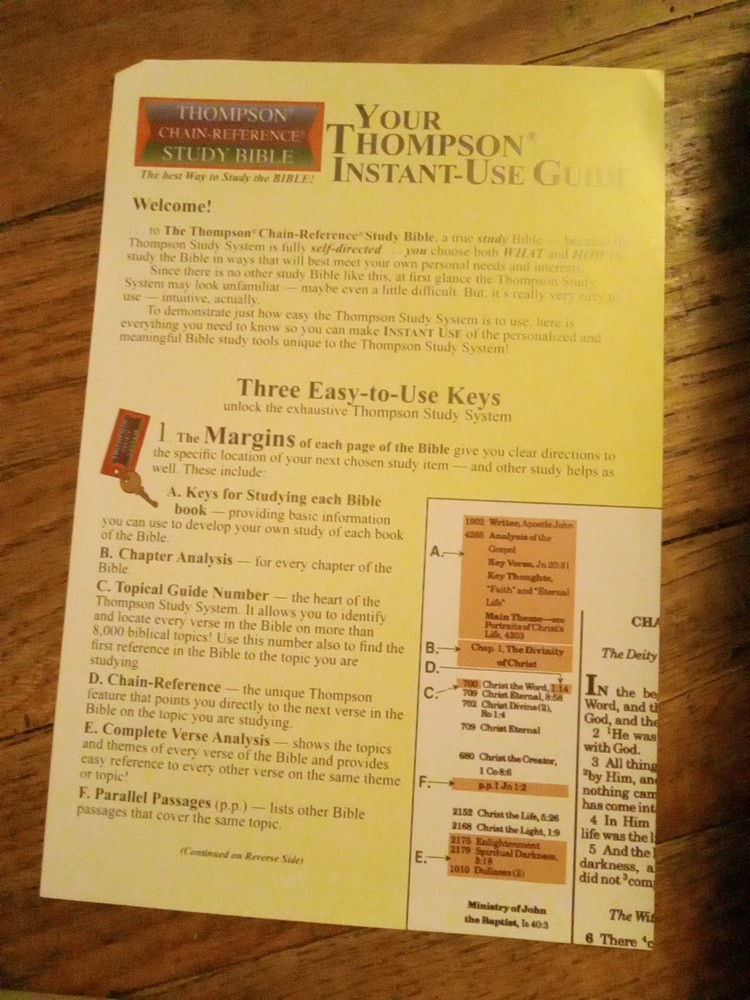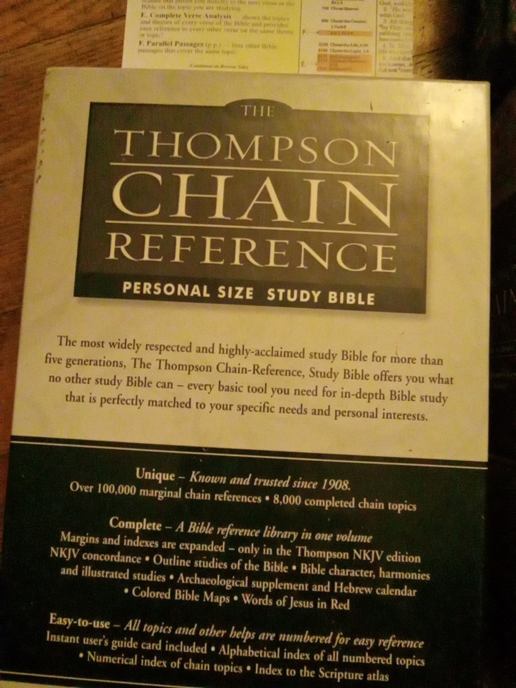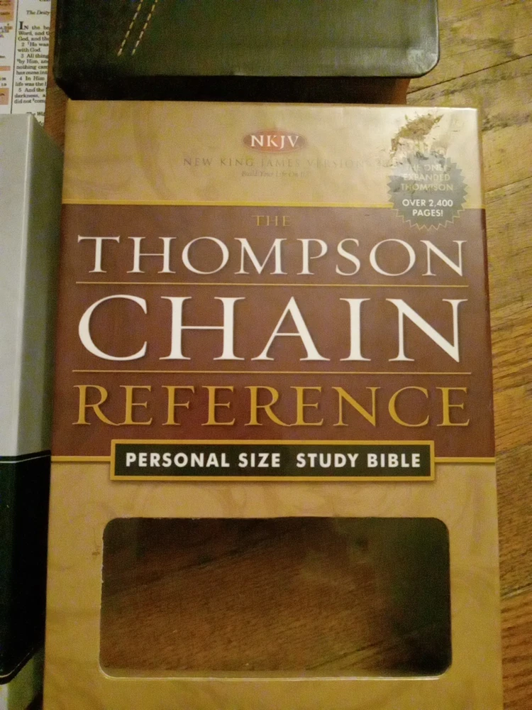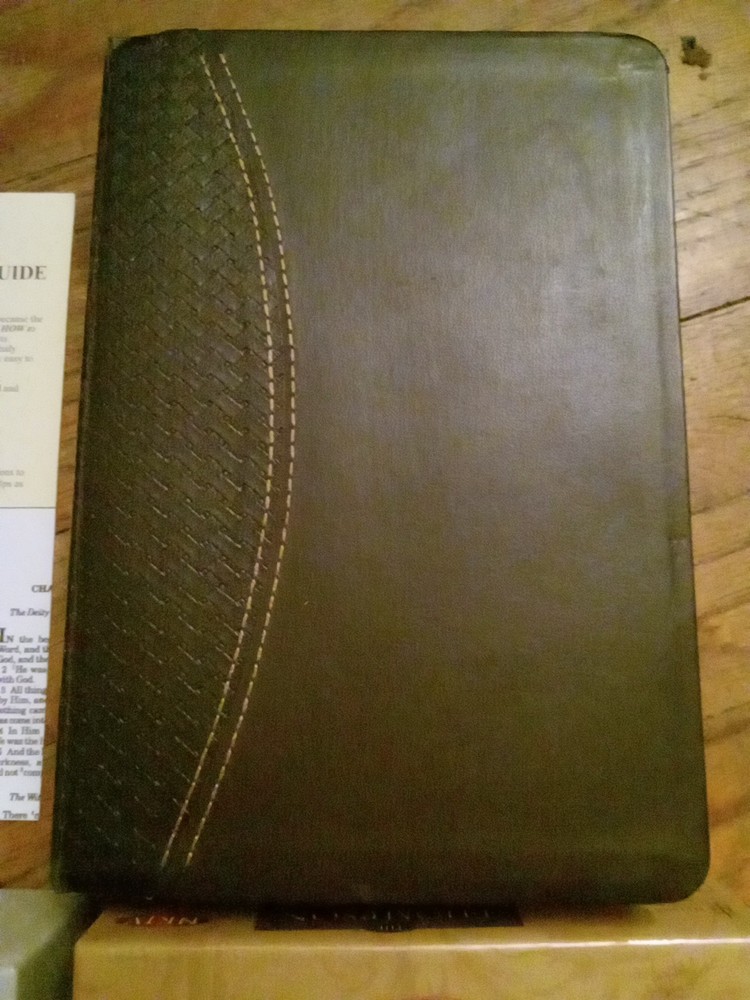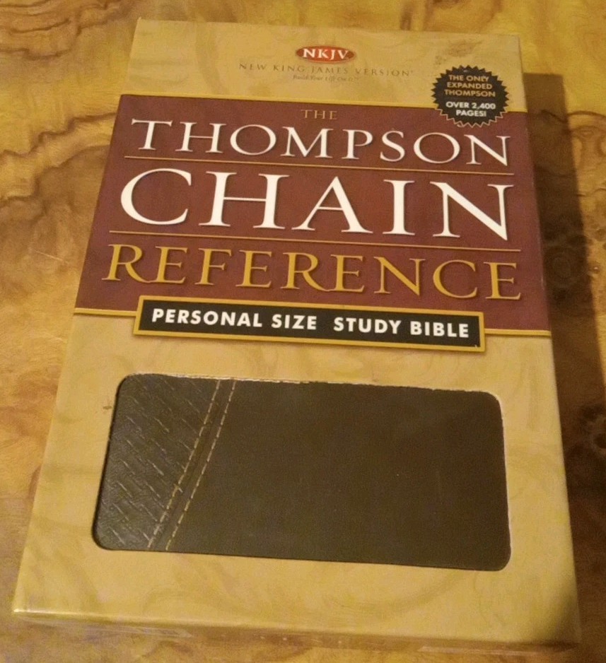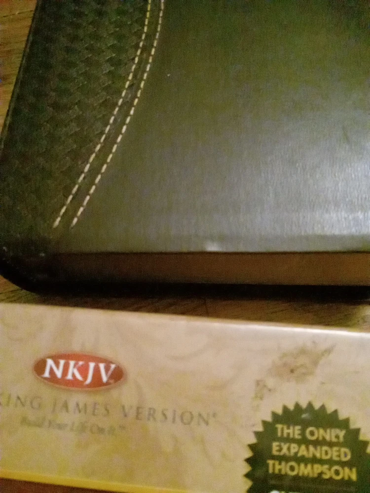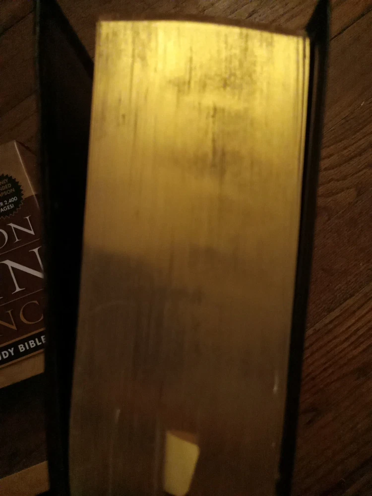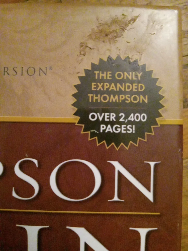 .....This Bible is not new, but in excellent condition. The box has sticker residue on the top right front, and the plastic is slightly loose. The Bible does have a name, and message written on the front page. If it is written in pencil you could erase it. The edges of the pages has some scrapes. There may be a few wrinkled, and bent pages. Overall this is a great study Bible. Look at the photos for any reference. If you have any questions just let me know. Have a great day, and God bless.