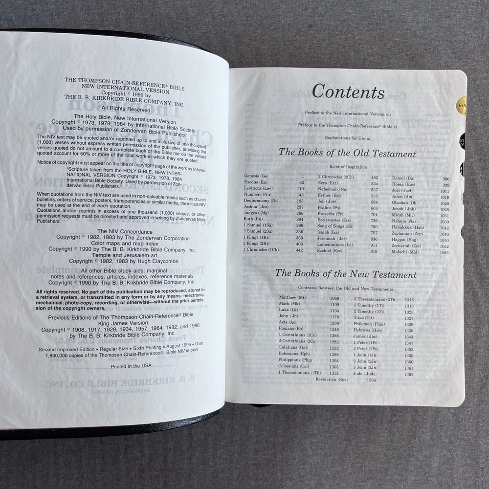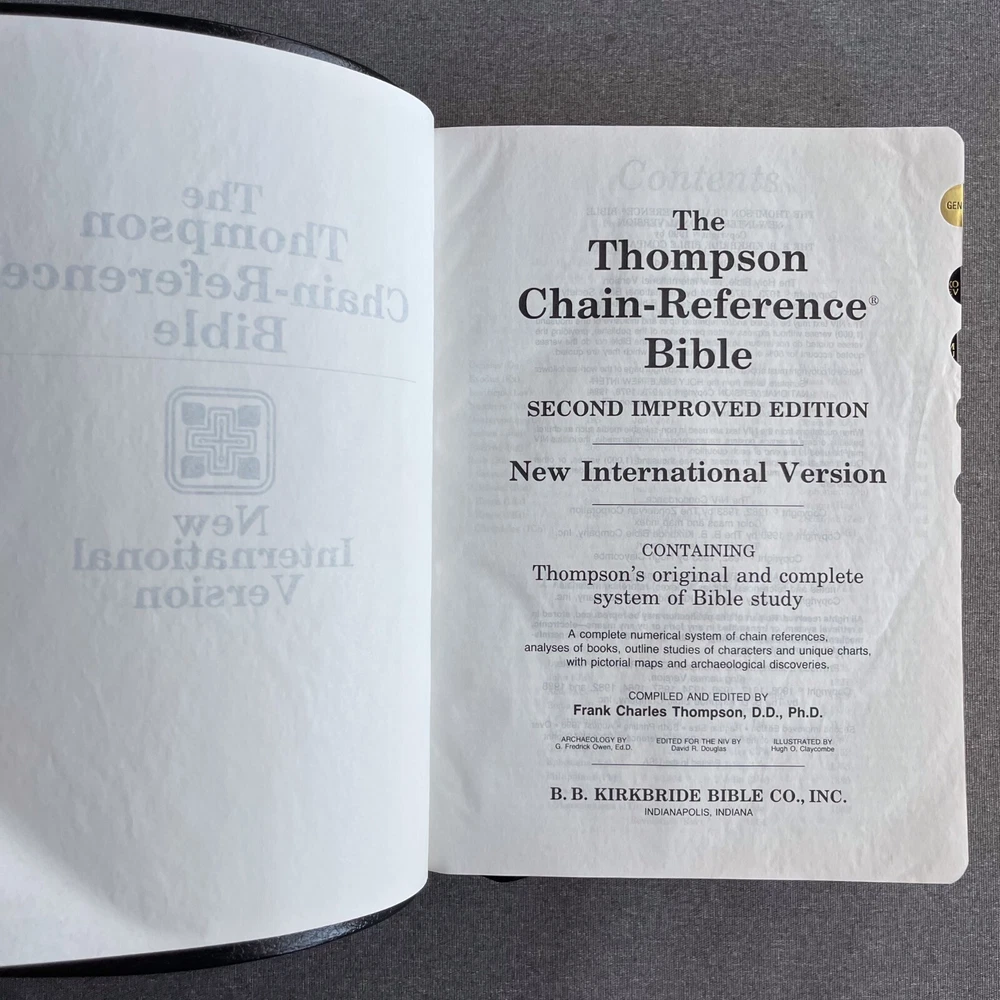 Title: " The Thompson Chain-Reference Bible SECOND IMPROVED EDITION New International Ver Description: CONDITION: Pre-owned with normal signs of wear and tear. The cover, spine, and back show visible scuffs, some pages may have creases and there may be some staining on the front and back cover. Please refer to the images to better understand the item's condition. Details: Returns: We offer a 100% money-back guarantee. If the item does not meet your expectations, you can return it for a full refund. Shipping: The item will be dispatched within one business day upon receiving payment. Thank you for considering this item. Should you have any inquiries, concerns, regarding the product or service, please don't hesitate to get in touch. Your satisfaction is our priority, and we are committed to ensuring your complete contentment. Thank you for your purchase. "Optimize your shipping costs by acquiring multiple items! We are delighted to combine shipping for multiple purchases." Please feel free to reach out if you have any further questions. When shipping a book, it typically goes through media mail unless there's a request for expedited shipping.