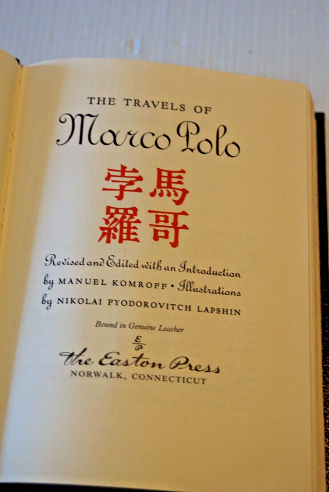 You are bidding on. Easton Press The Travels of Marco Polo Genuine Leather Bound. Copywrite 1962 Excellent cosmetic condition. I make every effort to pack & ship your item with utmost care in order that it arrives safely ~ (You will receive your item packed the way I would like to receive all my purchases). I typically ship within 24 hours of payment, and leave positive feedback the same day as I ship. I will gladly combine shipping when possible. I describe items as I see them, but if I make a mistake, please contact me and I will do my best to resolve the problem.