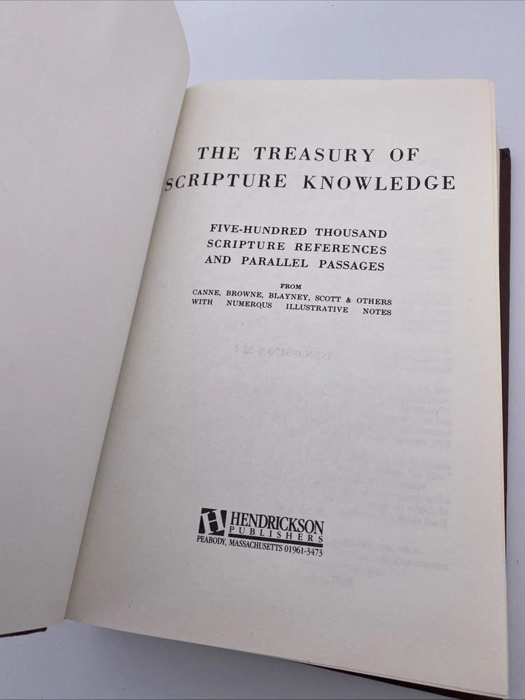 The Treasury of Scripture Knowledge 1982 500k Scripture Reference MacDonald Publisher. Bible is in very good condition with no writing or damage to pages or spine. Some marks on outside pages due to a...