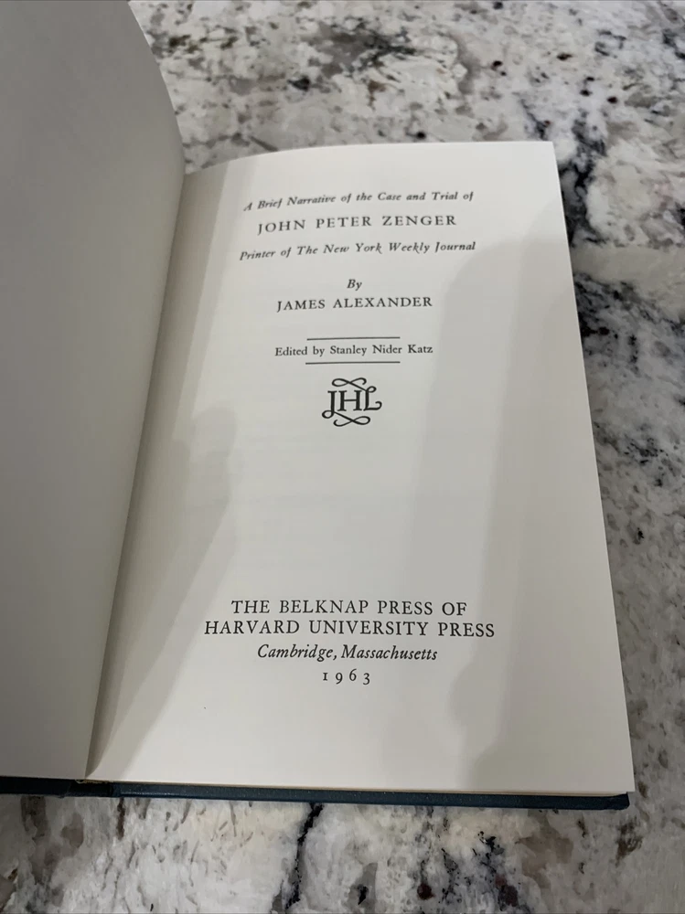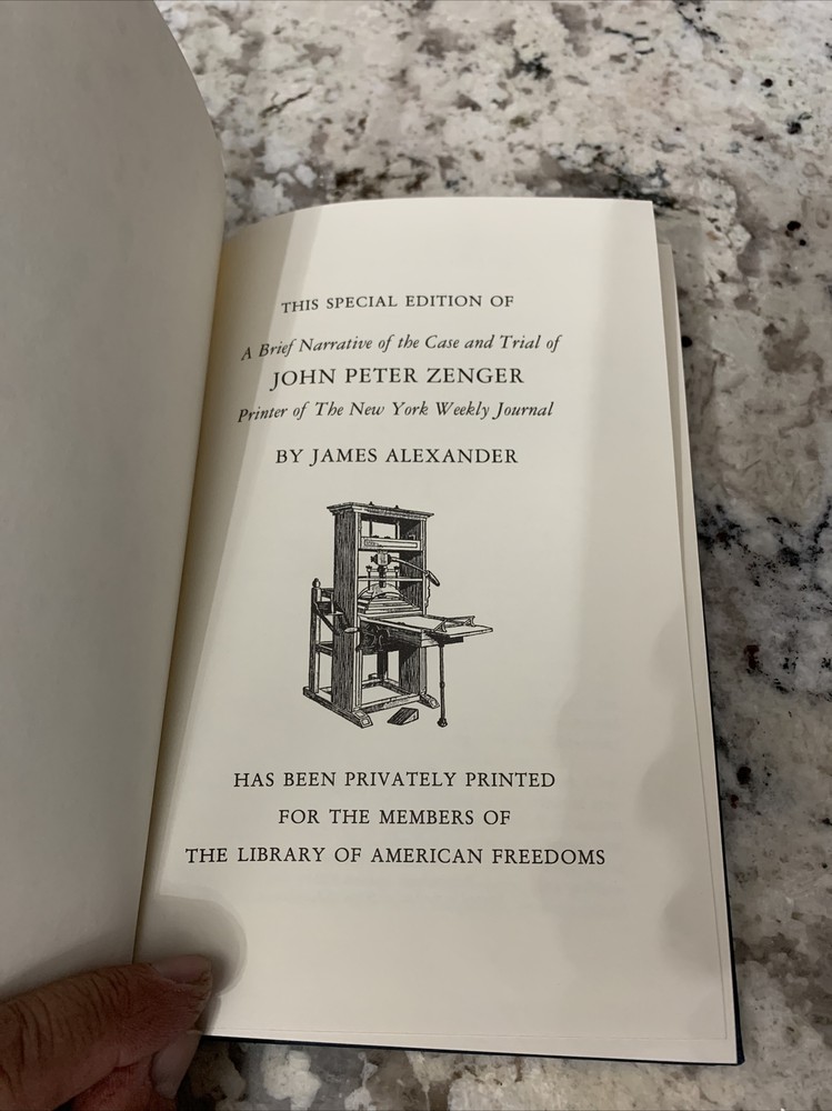 The Trial of John Peter Zenger by James Alexander Library of American Freedom.