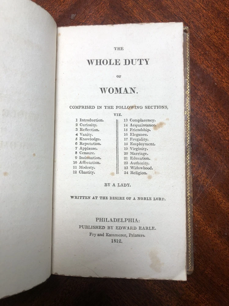 The Whole Duty Of Woman by A Lady (William Kenrick), 1812 Philadelphia Etiquette. Shipped with USPS Media Mail.