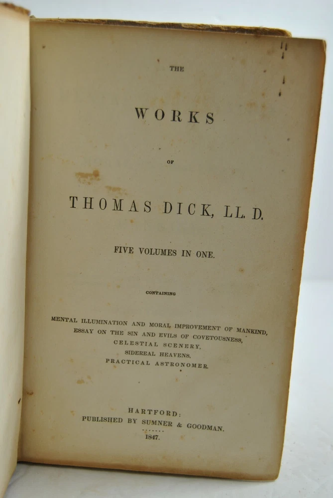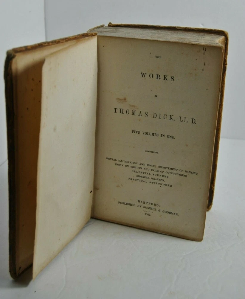 U BEAUTY CURIO SHOP & BOUTIQUE For your consideration is this is a rare find for collectors and enthusiasts alike! The complete works of Thomas Dick, LL.D, bound in fine leather. Published by Sumner & Goodman in the United States in 1847, this original volume features a wide array of reference topics that cover various subjects, including history, science, and philosophy. REFUNDS e B a y MONEY BACK GUARANTEE PAYMENT SHIPPING I estimate shipping costs and try to be reasonable and as accurate as I possibly can be. All items to be mailed in one business day above receipt of payment