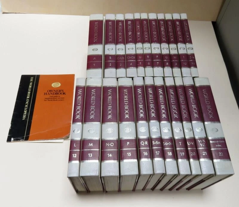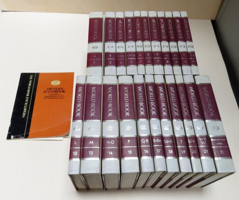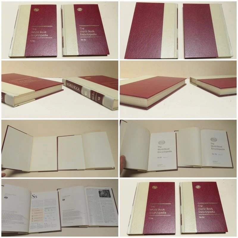 Title: The World Book Encyclopedia (Complete Set) Publisher: World Book, Inc. Publication Year: 1983 Format: Leather Bound Hardcover Page Condition: Very Good. The front page of Volume 8 (G) is torn. Otherwise, the pages are crisp and clean. Dust Cover N/A. There are no dust covers with these books. Cover Condition: Like New. Spine Condition: Like New. Additional Comments: This is a complete set (1-21 + the Research Guide and Index edition). With the exception of the minor damage to Volume 8, these books are in excellent condition. ~~~~~~~~~~~~~~~~~~~~~~~~~~~~ This item was previously owned. We are an estate liquidation company and are not experts on any one particular product, so please view photos closely for details and ask questions before purchasing. All items are sold "As-Is, Where-Is" with no warranty implied. Please refer to the terms of our return policy. Buyer pays return shipping. Thank you for looking! The World Book Encyclopedia 1983 Complete Set 1-21 + Index - Vey Nice Condition The World Book Encyclopedia 1983 Complete Set 1-21 + Index - Vey Nice Condition Click images to enlarge Description Title: The World Book Encyclopedia (Complete Set) Publisher: World Book, Inc. Publication Year: 1983 Format: Leather Bound Hardcover Page Condition: Very Good. The front page of Volume 8 (G) is torn. Otherwise, the pages are crisp and clean. Dust Cover N/A. There are no dust covers with these books. Cover Condition: Like New. Spine Condition: Like New. Additional Comments: This is a complete set (1-21 + the Research Guide and Index edition). With the exception of the minor damage to Volume 8, these books are in excellent condition. ~~~~~~~~~~~~~~~~~~~~~~~~~~~~ This item was previously owned. We are an estate liquidation company and are not experts on any one particular product, so please view photos closely for details and ask questions before purchasing. All items are sold "As-Is, Where-Is" with no warranty implied. Please refer to the terms of our return policy. Buyer pays return shipping. Thank you for looking! We stand behind each listing; our customer ratings are very important to us. We strive to do our best to ensure our customers are 100% satisfied. So please contact me if you have any questions, concerns or problems prior to purchase or upon arrival of shipment. Please view our feedback & buy with confidence. As far as packing - we take pride in getting our items to our buyers safely. If an insured item is damaged in transit please save all packaging to take to the PO if necessary. In order for me to start a claim and your payment to be received promptly, the USPS states that if an item is shipped back the insurance is null and void, So DO NOT start a return on a damaged item, contact us and we will get on the claim process right away. If an item is lost the PO requires a 20-30 day wait before a lost item insurance claim can be filed. FedEx will sometimes send someone out to pick up the item and inspect it. We have a pretty good track record of items arriving safely, we pack for survival! View My Other Items For Sale View My Feedback PS #5598-SCFLRCK H2 - 251904 Payment Winner is expected to pay within 7 days or I will relist the item. Sometimes exceptions can be made but please contact me first. Buyers in California will be charged 8.00% sales tax. Shipping DEPENDING ON THE ITEM AN ADDITIONAL HANDLING AND PACKING MATERIALS FEE WILL BE ADDED TO EACH ORDER upon checkout. WE PURCHASE BOXES, PEANUTS, BUBBLE WRAP, ETC TO ENSURE YOUR PURCHASE ARRIVES SAFELY, AND PLEASE KNOW THAT EBAY GETS A PORTION OF THIS FEE ALSO. Shipping is automatically calculated on weight and destination by eBay and the shipping calculator. All items will be packaged securely. We will, at our discretion, use a better and/or faster shipping service if it falls within the shipping amount paid. Items are shipped by USPS, FedEx Post, and also FedEx depending on the weight and size of the item. We ship daily, Monday through Friday. If you pay for your item before 7:00 am Pacific Time, it will ship the same day. Otherwise, it will ship the next business day. International Buyers - Please Note: We offer international shipping on everything we're able to. If an item can be shipped internationally (outside the US and Canada) there will be a calculated cost included in the listing but you can also contact me. If you do not see international shipping offered on the listing then the item is too large to ship to your country. Your customs form will include accurate information. Do not ask me to falsify the customs form. Import duties, taxes, and charges are not included in the item price or shipping cost. These charges are the buyer's responsibility. Please check with your country's customs office to determine what these additional costs will be prior to bidding or buying. Items sent internationally can possibly take anywhere from 5 days to 6 weeks for delivery. Terms of Sale Please check all photos carefully to make sure condition and contents meet your expectations --IMPORTANT! - PLEASE READ!!! Pictures are also a big part of any description. Certain things that may not be said are shown and vice versa so be sure to not only read everything but look at my pictures and click on any image for a larger image. Please read the description carefully. It will tell you the condition of the item, whether or not it has been tested and any additional notes. We will list what is included in the package. If it is not listed in the description, or shown in the pictures, please do not assume it will be included in with the auction. Please review our return policy & terms before you purchase. About Us Please note that these are real vintage items, so part of their charm is age. Please examine the photo carefully as it might have some minor damage somewhere that is being pointed out in my photos. When there is something significant, we will photograph it and disclose it in the description. We try hard to describe our items as completel