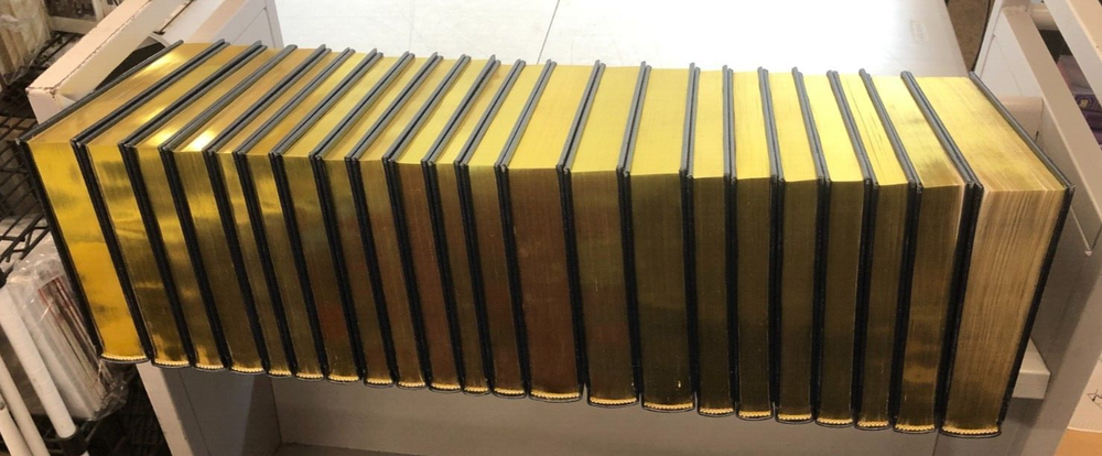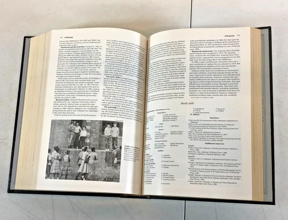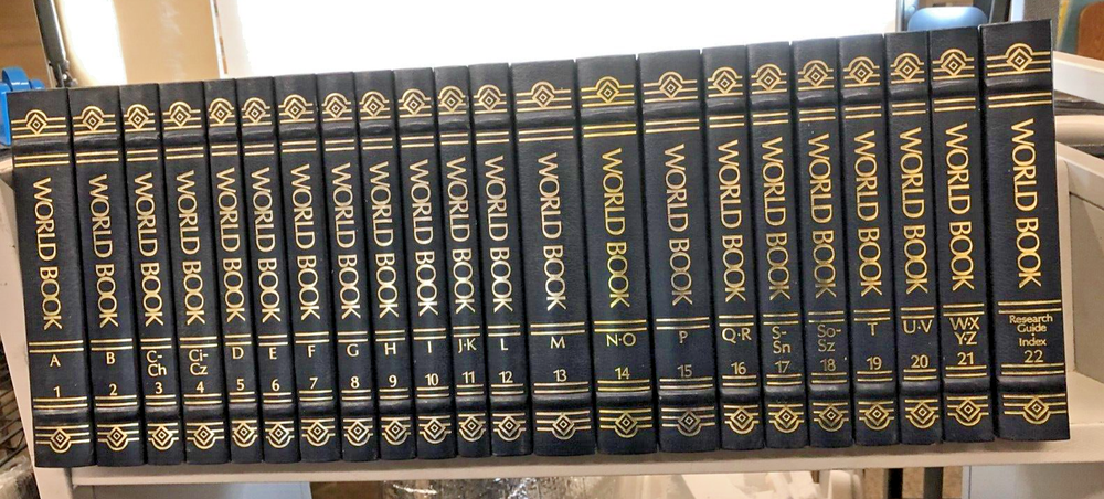 Please note we do not work weekends . All offers, questions, or concerns may not be answered until Monday. Please understand this means you may need to resubmit your offer Sunday evening. Thank you for supporting our libraries and have a great weekend. World Book was founded in Chicago by publishers J. H. Hansen and John Bellow, who realized that existing encyclopedias were off-putting to readers. In 1915, they enlisted the help of Michael Vincent O'Shea, a professor of education at the University of Wisconsin. The first edition of The World Book Encyclopedia was published (as simply The World Book) in 1917, by the Hanson-Roach-Fowler Company. "As a rule," wrote O'Shea, the founding editor, in the preface of that 1st edition, "encyclopedias are apt to be quite formal and technical. A faithful effort has been made in the World Book to avoid this common defect." The encyclopedia's name would later be shortened to its current name World Book. This is a beautiful complete set of World Book Encyclopedias, 22 volumes. Navy faux leather covers with gilt design on front and back covers, gilt lettering and design on spine, spine has 2 raised ribs. Gilt text block on all 3 sides. Volume 1 has a section for family history. They feel as if they have never been opened. Set weighs 65 lbs will ship in 2 boxes All proceeds benefit the Libraries of Pima County. Please review all photos. This listing has been donated. Please note that the listing is for what you see in the listing. We photograph all of it so you know what you are purchasing. The sale of the item(s) benefits Friends of the Pima Library (501c3 non-profit).