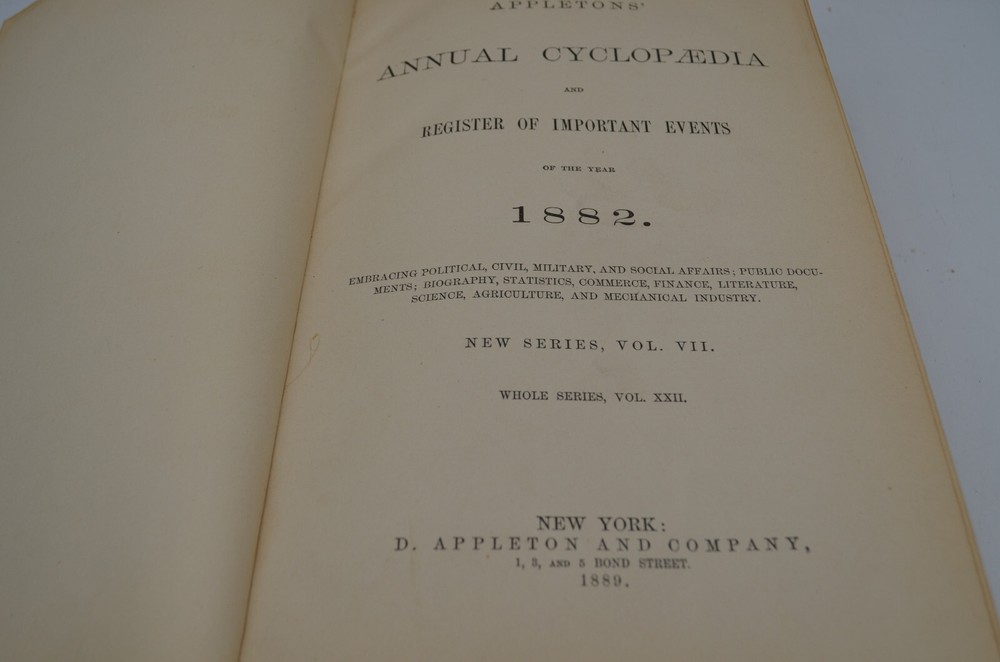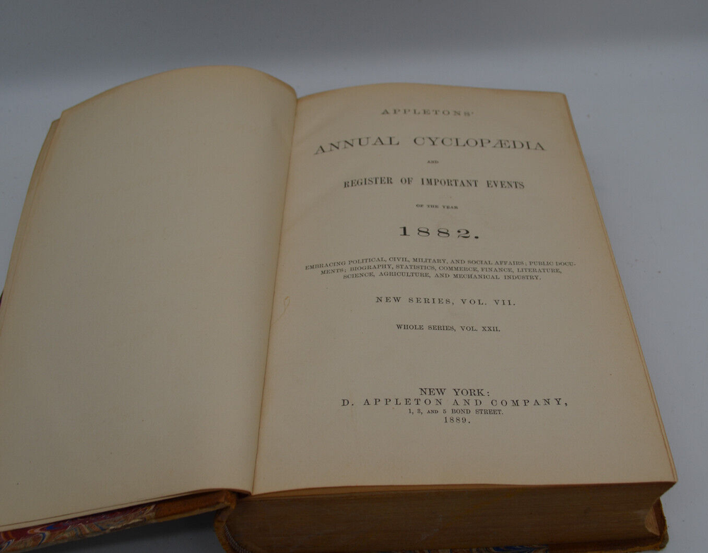 You are bidding on a The annual CYCLOPEDIA AUTHENTIC 1882 new series VOL. VIL. Register of important events 1883. Printed 1889. In good condition for the age. Thanks for looking and please look at My other auctions. I Strive to offer quality products at a great price. Fast Shipping –Same day or next day after payment is received. Gladly combine shipping at no additional cost if multiple items can ship together in one box. I ship the most efficient and economical way possible ********** My goal is to maintain a 5 star rating***** If you feel you will be unable to give me a 5 star rating for any reason please contact me before giving me a feedback or star rating! Thanks