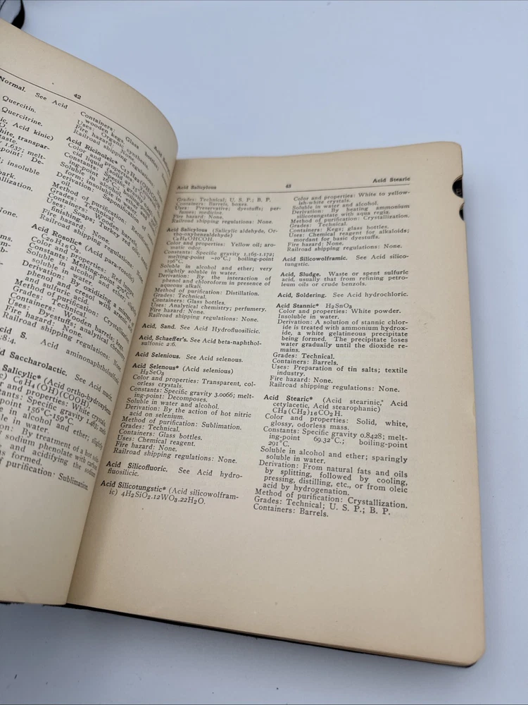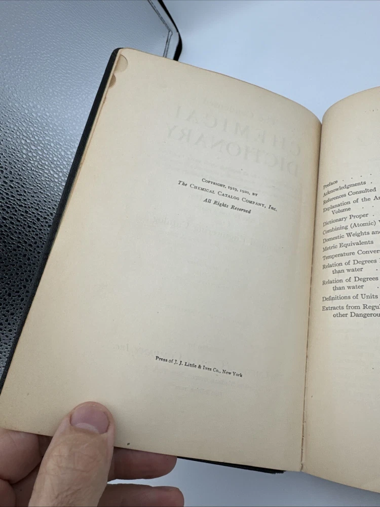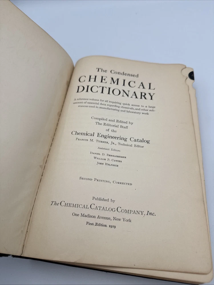 This leather-bound Condensed Chemical Dictionary is a fantastic resource for chemists and science lovers! Packed with detailed info on compounds, properties, and safety data, it's both practical and reliable. The sturdy leather cover gives it a classic, professional look while ensuring it lasts for years. Whether you're a student, researcher, or just curious about chemistry, this dictionary makes complex topics easy to understand. A must-have for any science bookshelf—highly recommended!