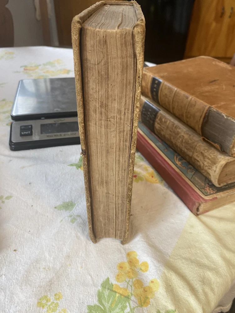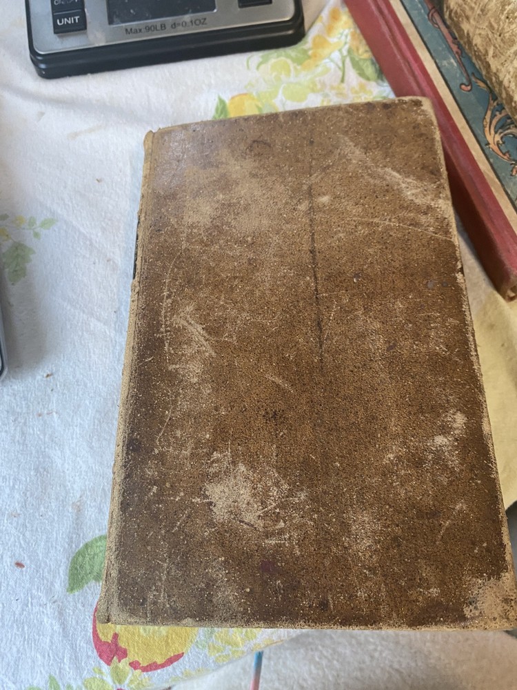 Book is tight. Leather is worn with scuffing and edgewear Pages have some significant fixing. Paper is slightly warped but no mildew smell. D 93...