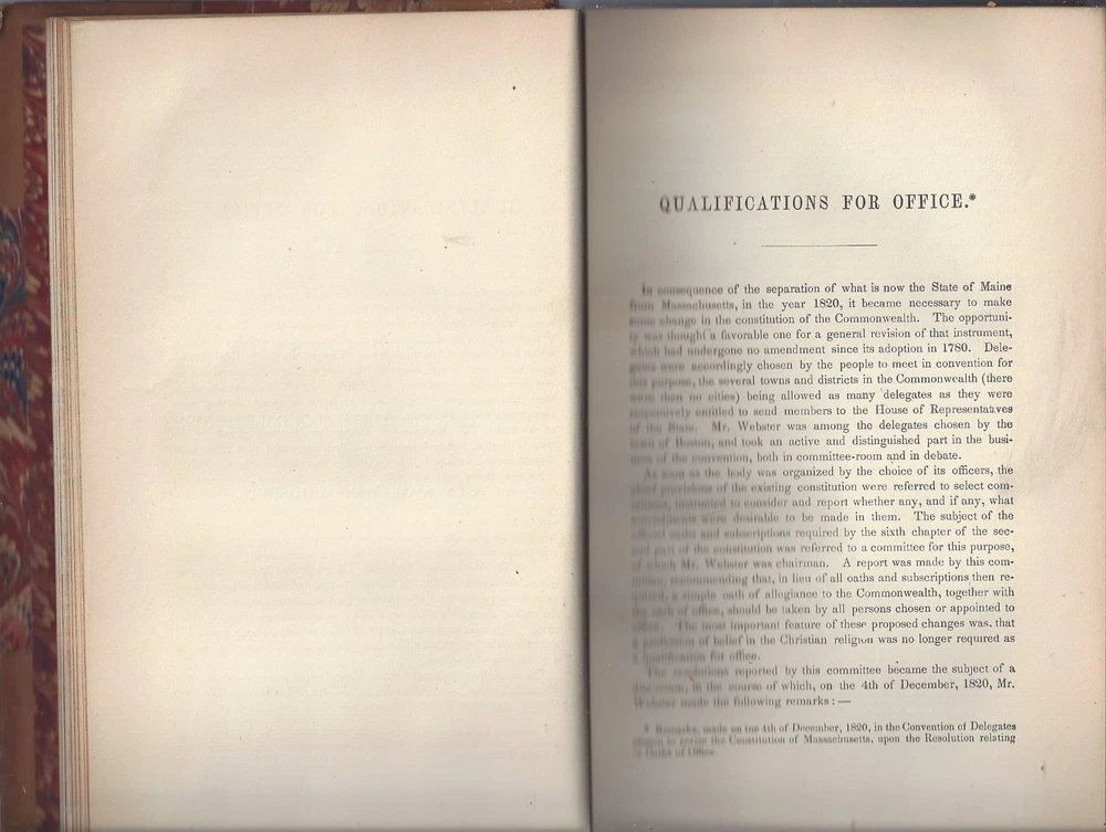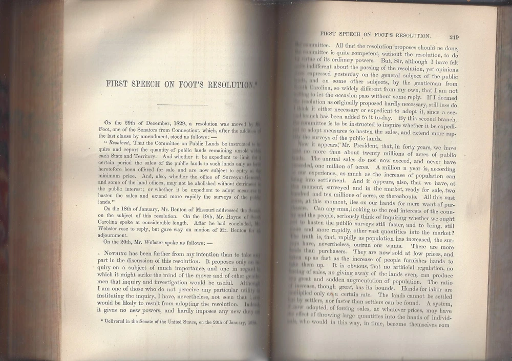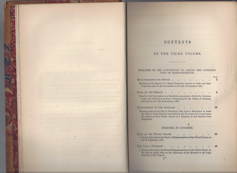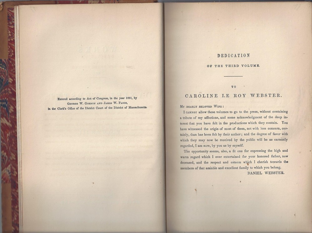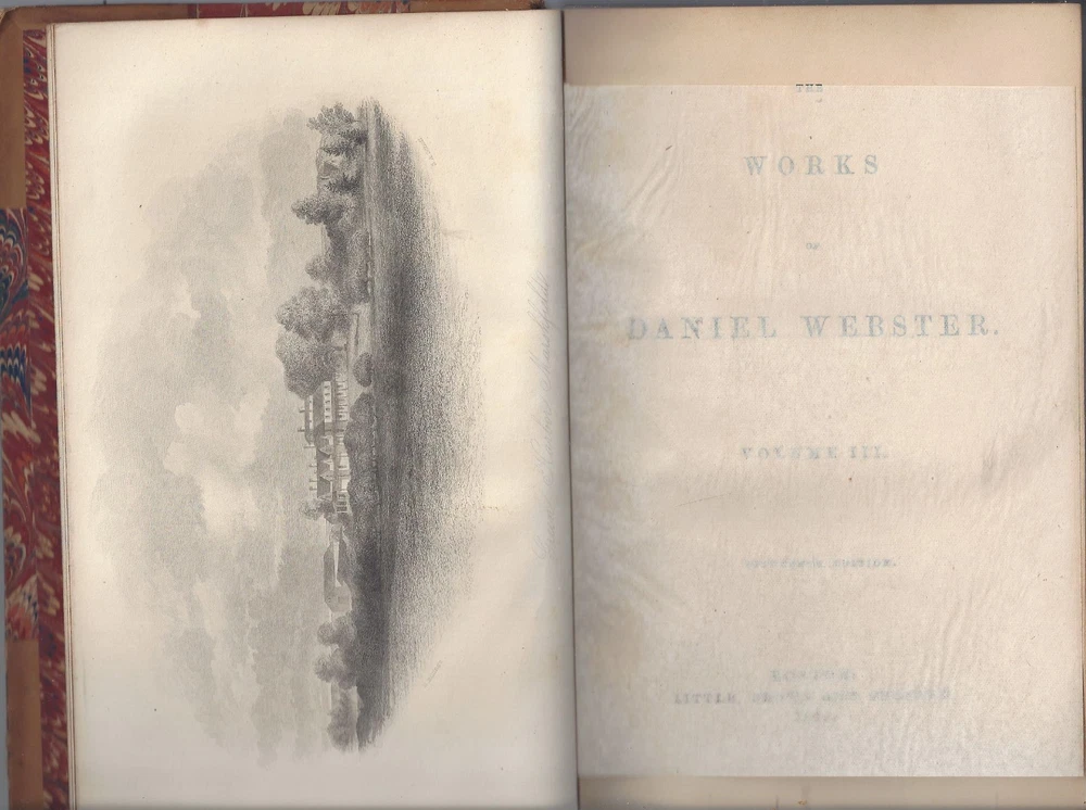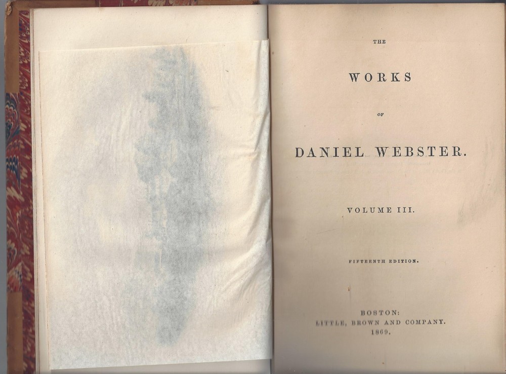 this hardcover is in good condition, The Works of Daniel Webster volume III Speeches of Daniel Webster part of a series published by Little Brown and co, 1869 leather covers, with colorful multiple color end papers and page edges a good size chip and fold of the leather at the top of the spine cover no dust cover dust-spotting and scuffings are present around the front and back covers, the pages inside the book are clean with some light tonings, no rips, tears or missing pages one illustration at the front, featuring a tissue paper cover spine is strong and intact, no writings or markings 551 pages, 6 by 9 inches, 1-1/4 inches thick light page toning or no serious damages not an ex-library book, no stamps or markings **Please refer to the photos as part of the items description **Email with questions From a smokefree, not petfree home Visit My eBay Store: ANASTASIA'S ARMOIRE *please review shipping options: domestic mail : First class mail- 3-7 days estimated with limited guarantees, parcel post- 7 to 10 days with no guarantees, priority mail- 1-3 days guaranteed, express mail- 1-2 days guaranteed. first class and parcel post ship with delivery confirmation- this confirms the item was delivered, but does not track the package. Priority and Express mail included full tracking service, Express mail includes $100 in insurance in the cost. international mai l - usps Express mail or UPS: 5-14 days guarantees, tracking and insurance up to $100 included, customs can delay the package beyond this, but it is rare. Other methods cost less, most of the time they arrive within 30 days, even with customs delays. But I have had several rare packages take several months to arrive at the destination. Since the other methods do not include tracking, I do not know where they are, until they reach their destination. For this reason, I do not offer international shipping with any other method than Express mail or UPS. Purchaser is responsible for any customs fees or taxes. Please contact us with any questions, Thank you for looking! Thank you for looking!!