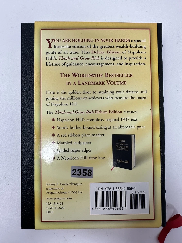 | Features | Complete Original 1937 Text, Vegan leather-bound casing at an affordable price, Marbled endpapers, A Napolean Hill timeline, Sealed in OEM Shrinkwrap |
